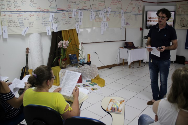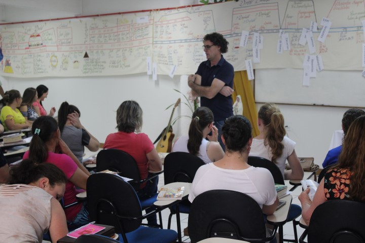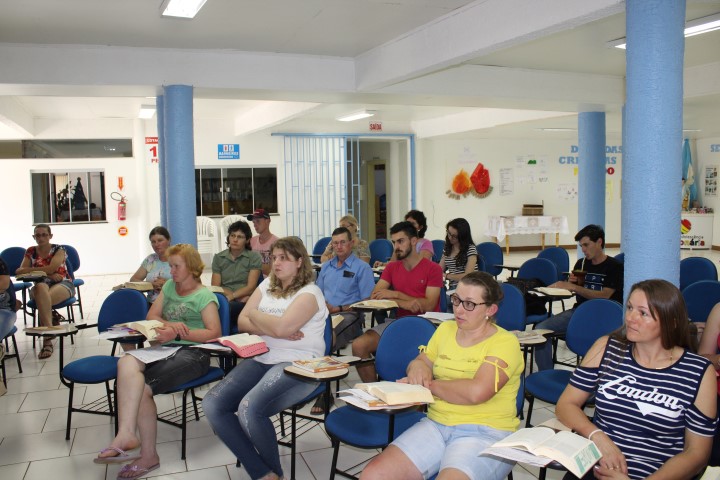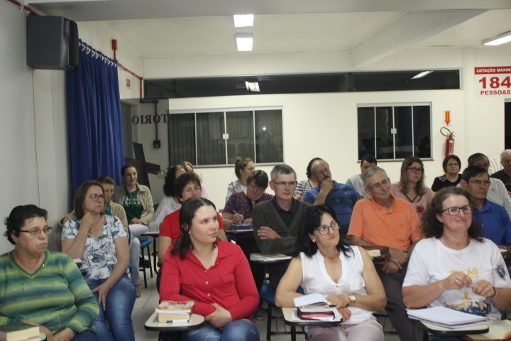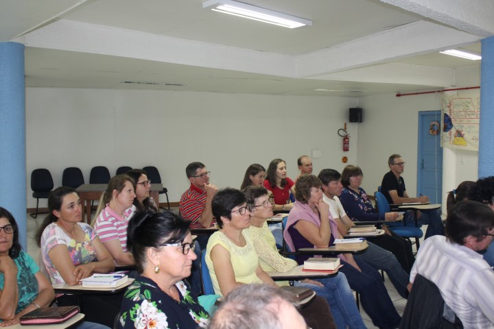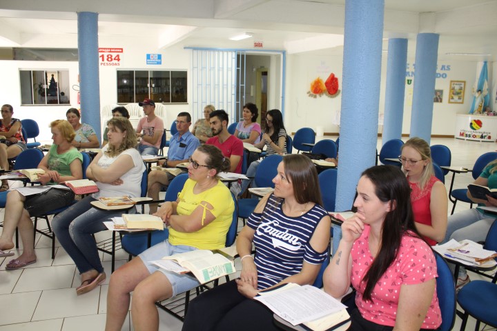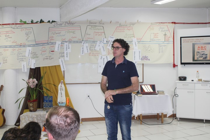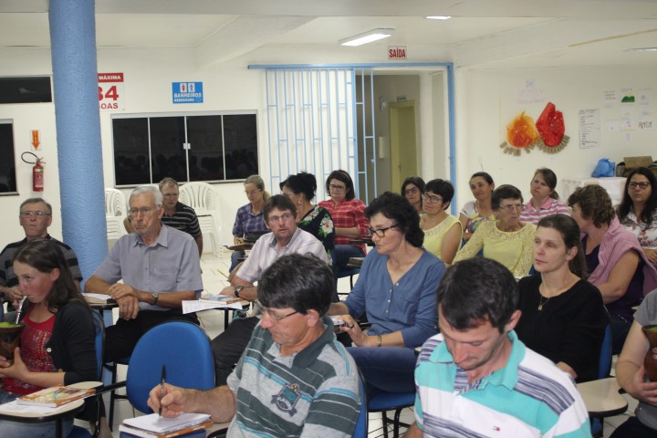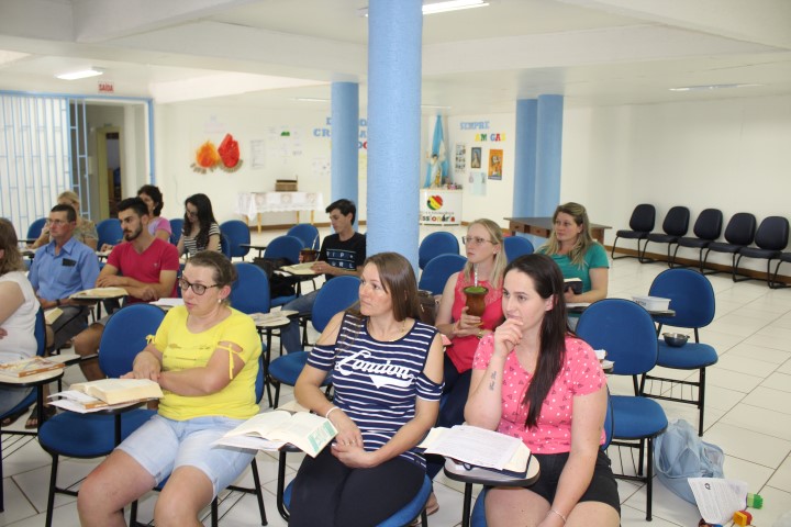 Aconteceu dia 30 de agosto o encontro de formação para catequistas, ministros atuantes e que estão em preparação, e demais lideranças. O tema era sobre o ABC da Bíblia – introdução a Bíblia e o assessor foi o padre Anélio da Paróquia de Cunha Porã. A formação ocorreu no auditório da paróquia em dois momentos: a tarde e à noite.