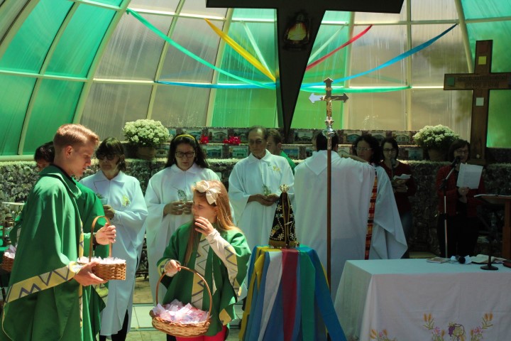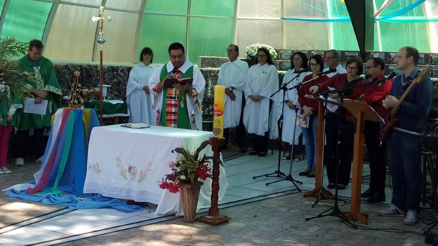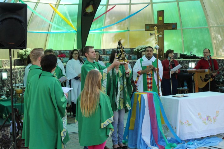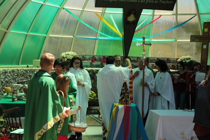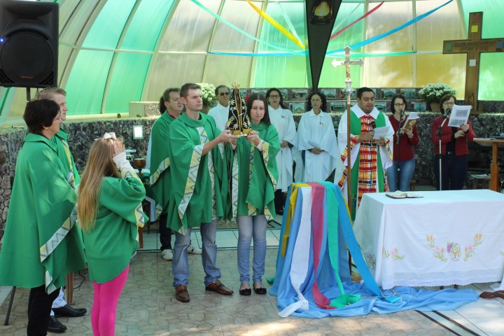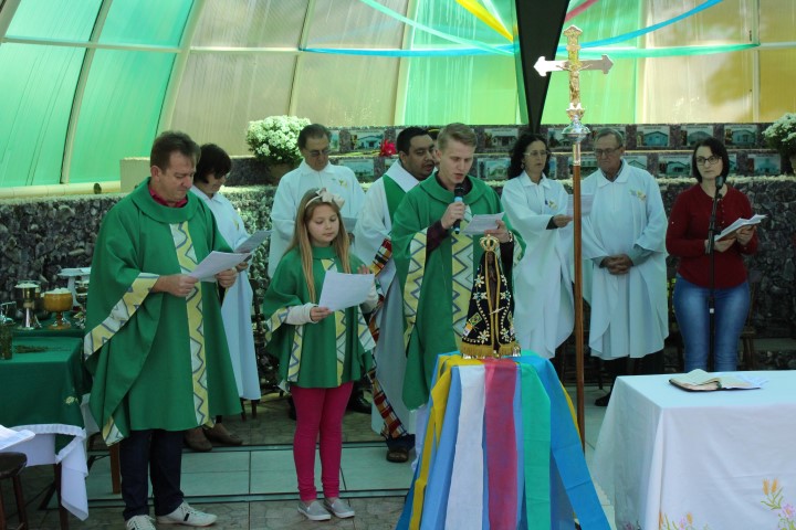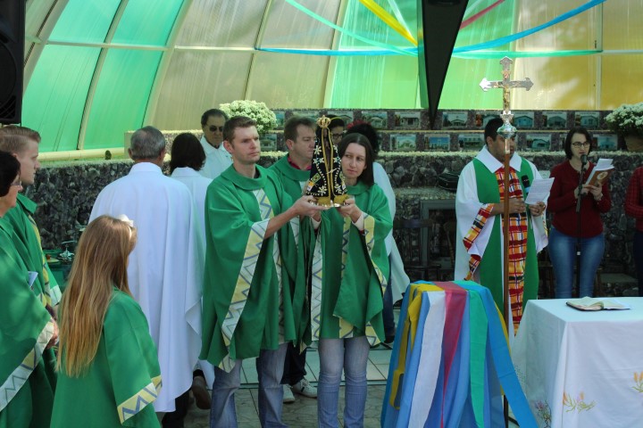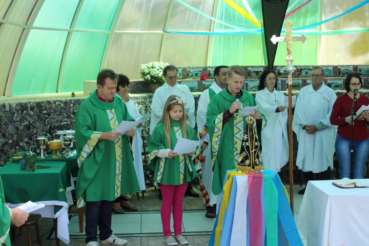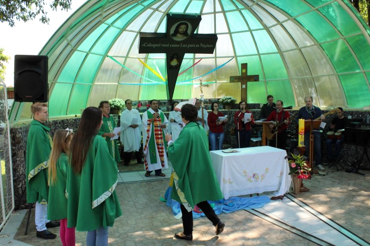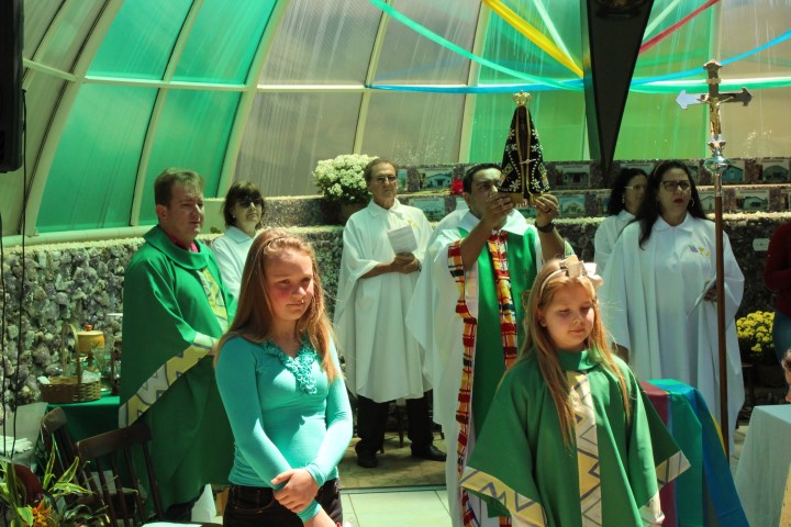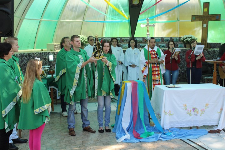 Hoje dia 28 de outubro aconteceu na comunidade de São Lourenço – no Marco das Missões a 6ª Romaria Missionária dos leigos e leigas. O tema da romaria era: “Leigos a serviço da vida”. A maioria das comunidades participaram desse momento celebrativo. Estava presente a réplica de Nossa Senhora Aparecida que durante a semana visitou todas as comunidades de nossa paróquia.