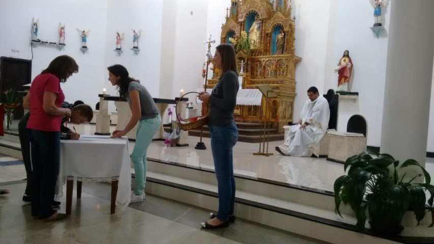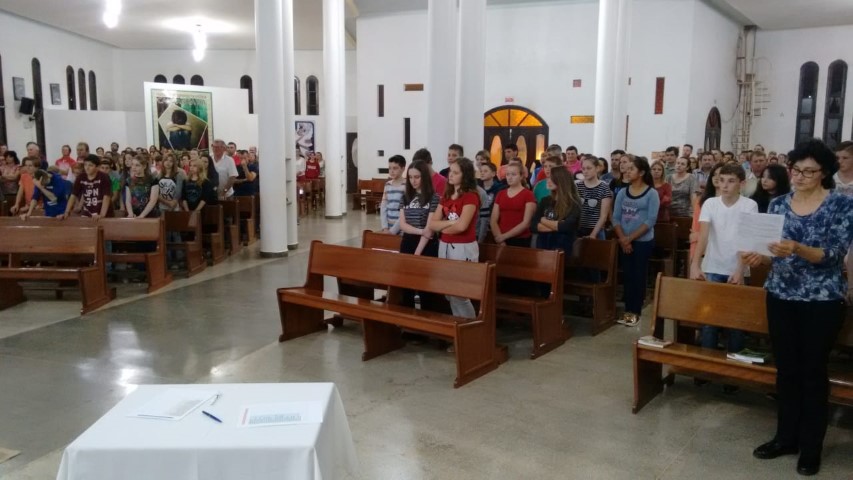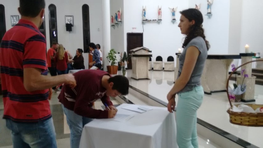 Aconteceu hoje dia 18 de julho, às 19 horas, na comunidade da matriz a Admissão dos adolescente/jovens para o catecumenato crismal. Estavam presentes pais, acompanhantes, os catequizandos, catequista nesta celebração. Foi um momento importante na vida destes jovens que deram seu sim a continuação da caminhada crismal.