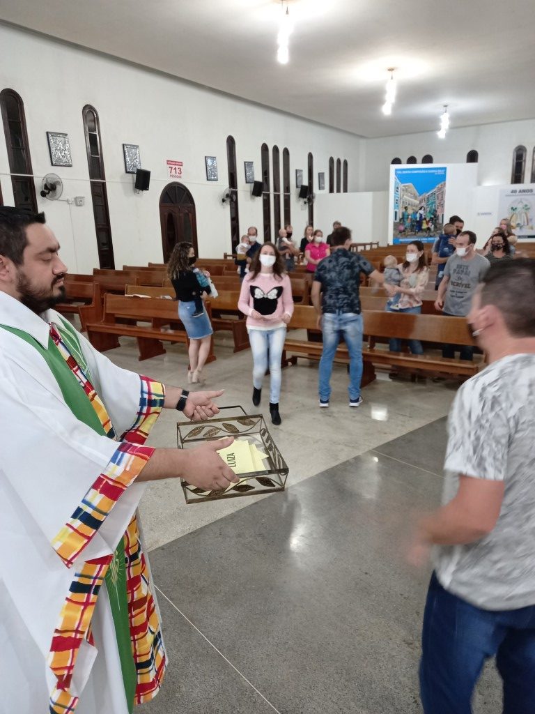Na noite do dia 19 de setembro de 2020 aconteceu a apresentação das crianças para o Sacramento do Batismo. Os Pais apresentaram as crianças as quais foram ungidas na testa com o óleo do Crisma. Este é um sinal de consagração a Deus e a comunidade. Ao receber tal benção, a criança inicia sua fé e sua vida cristã, tornando-se um filho de Deus, um discípulo de Cristo, um membro da Igreja (escrito por Fabiane S.).