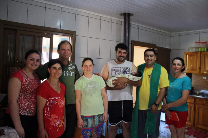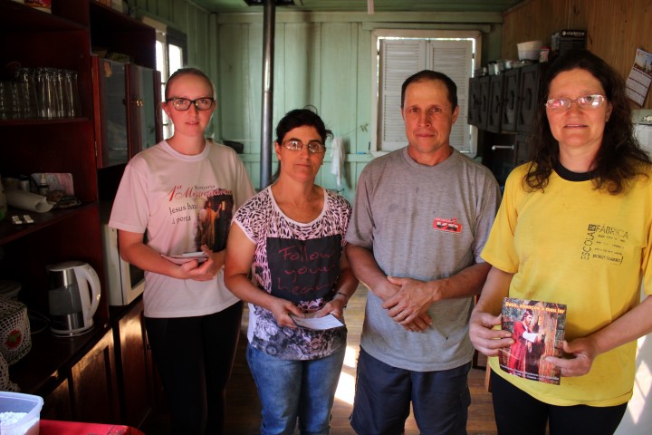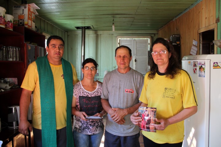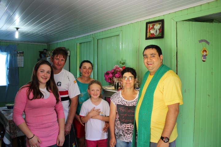 As missionárias e o padre visitaram e abençoaram 30 famílias na comunidade de Barra Grande, hoje dia 24 de agosto. As famílias doaram frutas, saladas, ovos e ofereceram bolos, bolacha, suco, água, doce e chimarrão. Agradeceram pela visita. Rezaram e cantaram na hora da benção da casa.