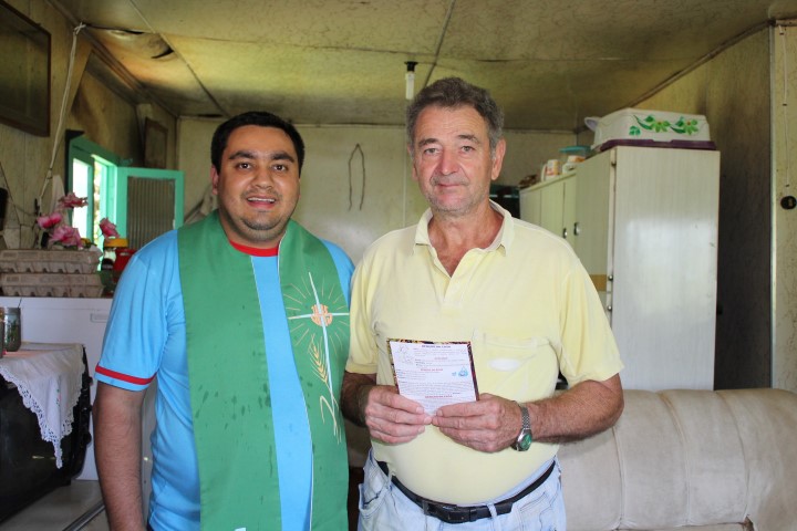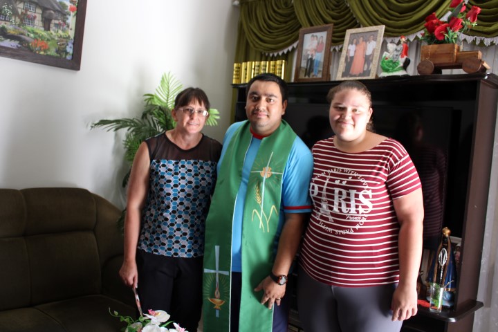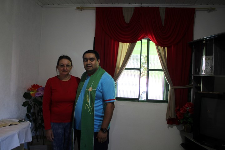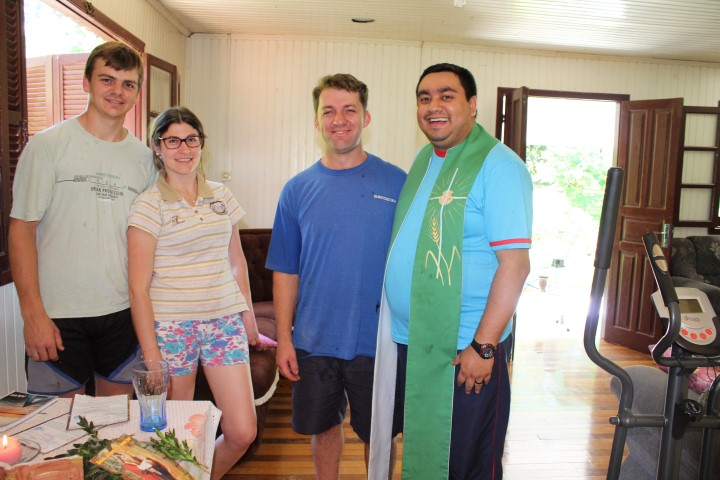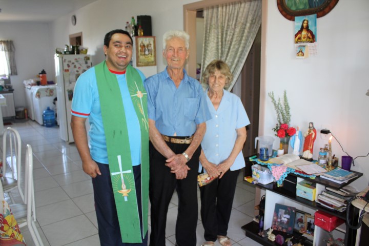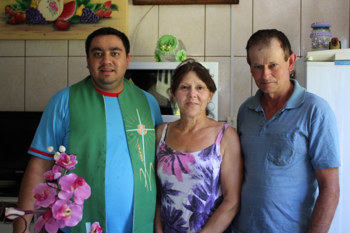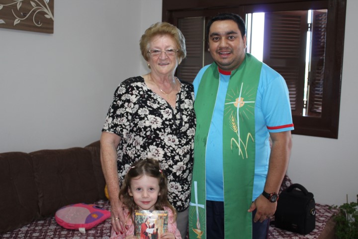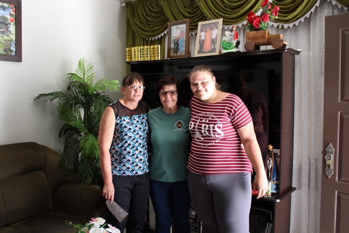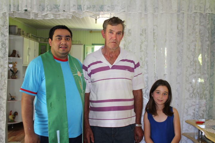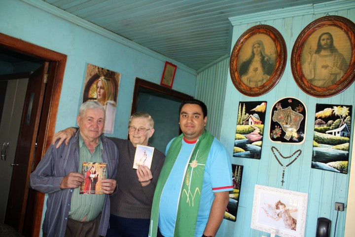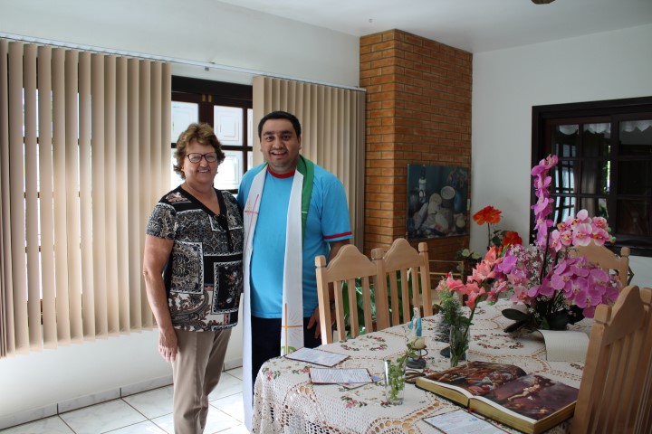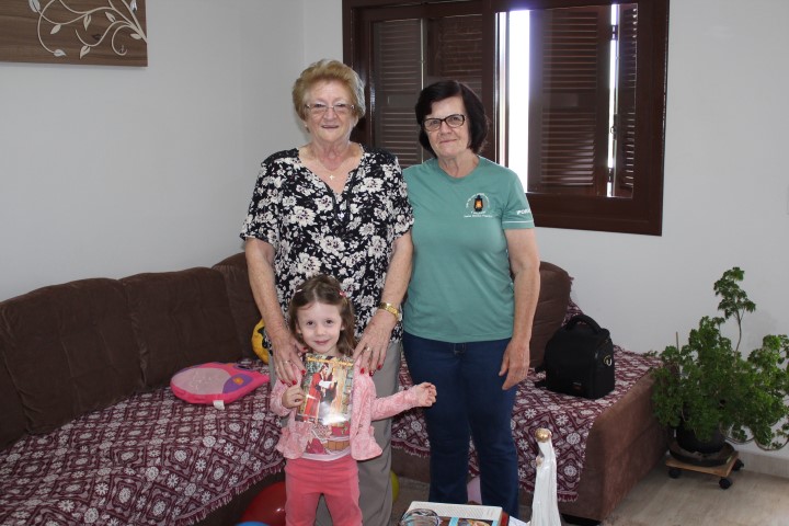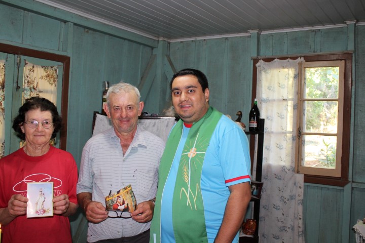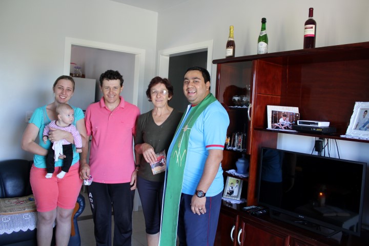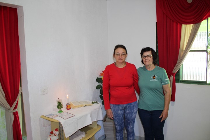 A Iria Hilgert e a Marlise Baron Reckziegel que são coordenadoras de setor acompanharam o padre na visita e benção das casas. Todas as famílias acolheram muito bem as coordenadoras e o padre.
