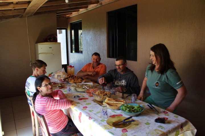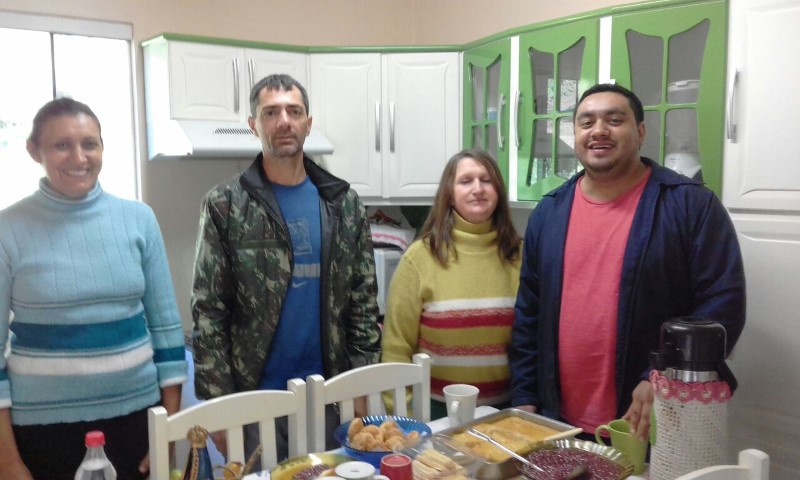 Hoje dia 21 de agosto de 2017 estiveram os missionários e o padre visitando e abençoando as famílias da Comunidade Pirajú. Tanto os cristãos católicos como os fiéis da igreja Luterana e Evangélica acolheram bem a equipe em suas casas. As famílias estavam preparadas e ofereciam café, bolos, salgados, chimarrão, almoço e uma boa conversa com as pessoas.