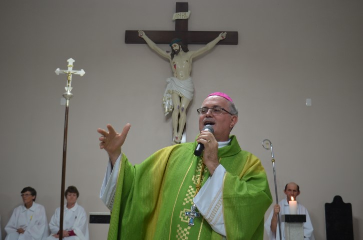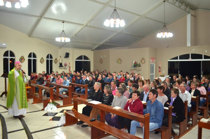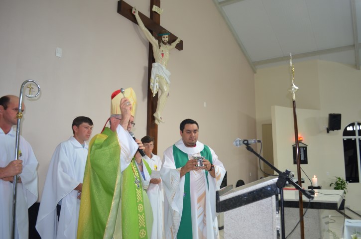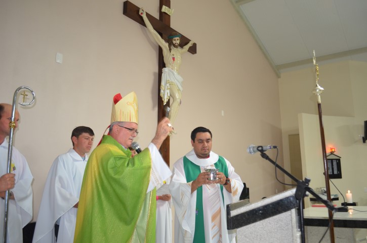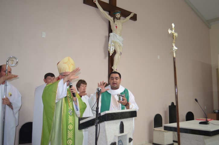 No dia 30 de junho o bispo Dom Odelir esteve na paróquia de Iporã do Oeste para realizar a benção do ambão da palavra e a consagração do altar da comunidade de macucozinho. As lideranças e o povo da comunidade fizeram uma bonita acolhida para o bispo, cantaram e soltaram foguete como demonstração de carinho e respeito ao Pastor de nossa diocese. Houve uma celebração de ação de graças bem preparada para bendizer a Deus pelas maravilhas que tem realizado na comunidade e na vida das famílias. Depois da celebração tinha um suculento churrasco no ginásio.