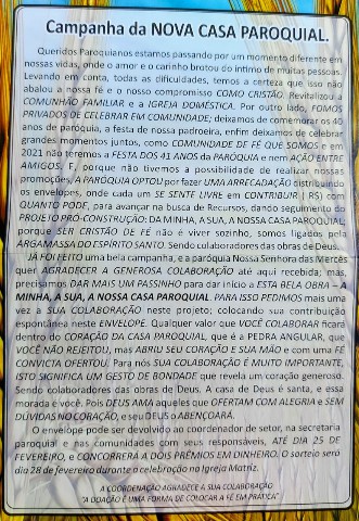 Muito já foi feito e por isso a Paróquia Nossa Senhora das Mercês quer se dirigir até você para AGRADECER sua colaboração. A casa de Deus é santa, e essa morada é VOCÊ.