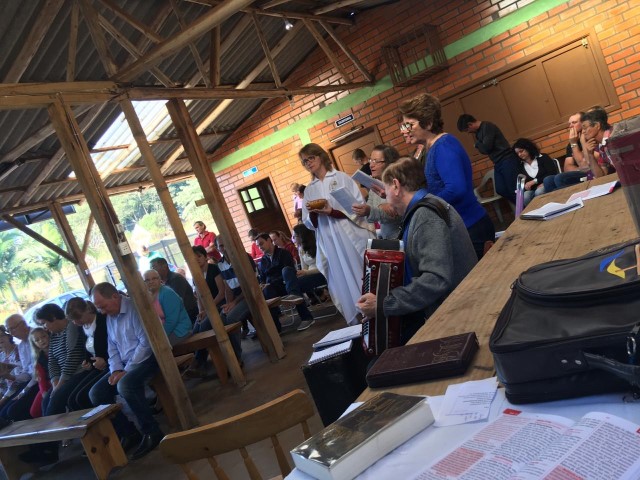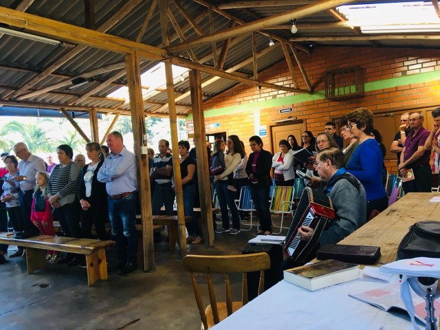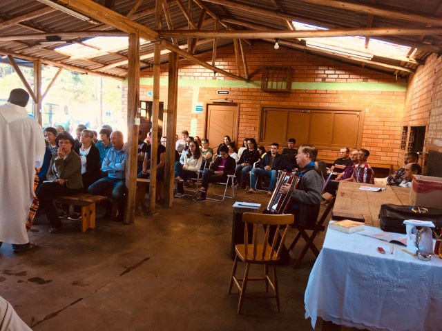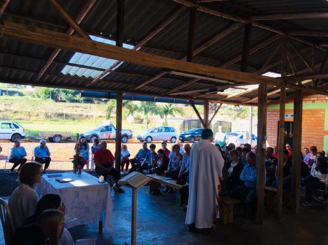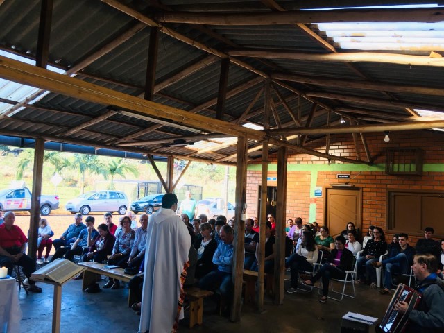 Aconteceu no dia 22 no Pavilhão da Associação Faic a celebração eucarística com as famílias daquele lugar e no dia 23 houve a celebração no Bairro Breunig. Foi um momento de a igreja estar mais próxima das famílias para juntos criar o espirito de comunidade reunida no amor, na fé e na esperança.