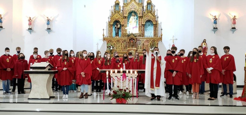 Neste último final de semana na sexta-feira, 07 e sábado, 08, cerca de 80 jovens da comunidade da Matriz receberam o sacramento da Crisma.