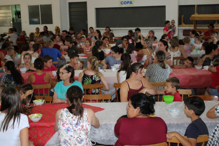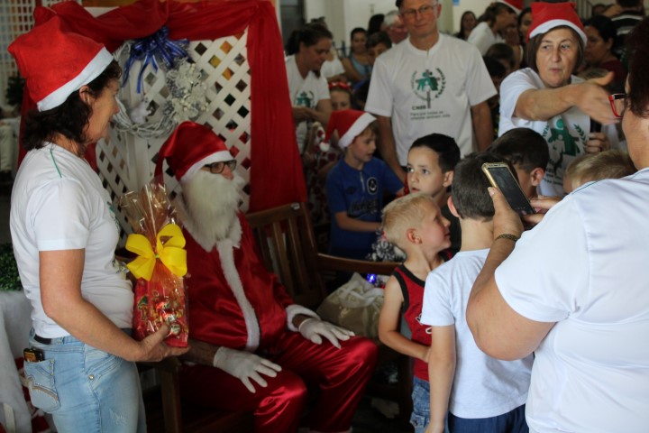 O Natal é uma data muito especial para todos nós, à espera do nascimento do menino Jesus foi o centro do encontro da Celebração da Vida realizada pela Pastoral da Criança no último sábado dia 07 de dezembro. Um grande número de pais compareceu engrandecendo o momento solene com a formatura das 22 crianças que completaram seis (6) anos durante este ano de 2019. Pelas voluntárias brinquedistas foi organizado apresentações voltadas ao significado do Natal, tornando o momento natalino. Pelas voluntárias da cozinha foi servido lanche feito com muita dedicação e carinho. A presença do Papai e Mamãe Noel tornou a celebração festiva e de muita alegria para as crianças, objetivo maior dos (as) voluntários (as) da Pastoral da Criança da Paróquia Nossa Senhora das Mercês, que se empenharam na organização do último encontro da Celebração da Vida. Pela Coordenadora da Pastoral Verene Ceolin, em nome de todos os integrantes, deseja sinceros agradecimentos pelo apoio e carinho, pela presença e compromisso em guiar nossas crianças pelo caminho do bem. Que Deus abençoe o lar, a vida e a família de cada um! E que 2020 seja de muita saúde, paz, felicidade e prosperidade para todos. PAZ e BEM, FELIZ NATAL.