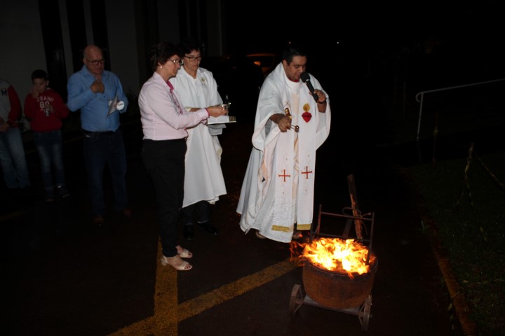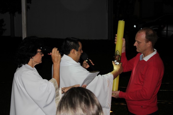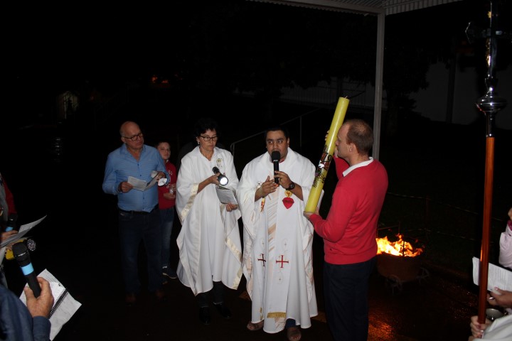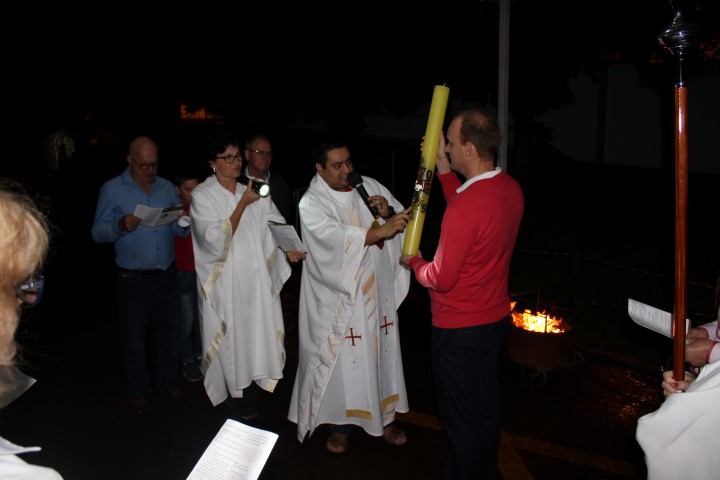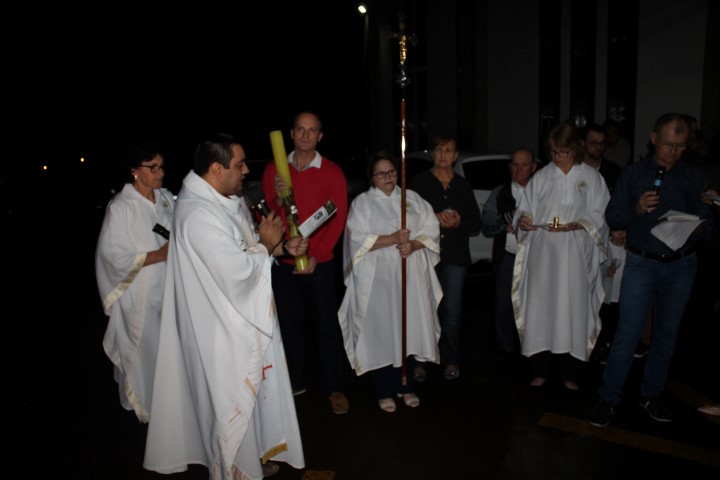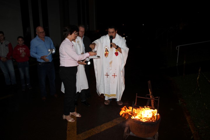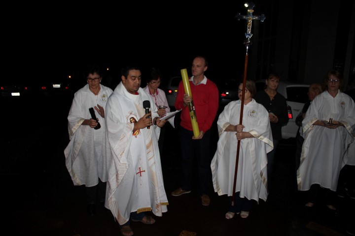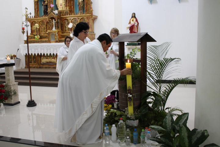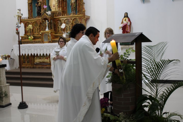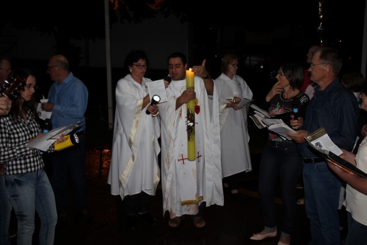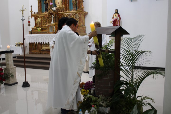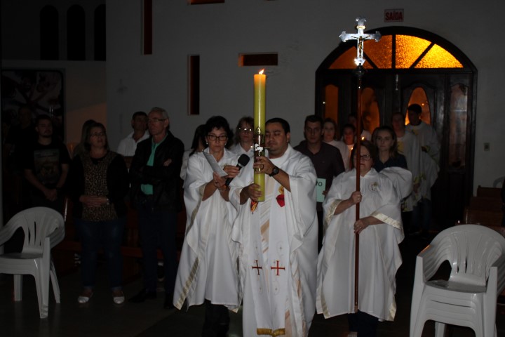 Aconteceu nesta noite do dia 20 de abril a Celebração da Vigília pascal na comunidade da matriz de Iporã do Oeste. A celebração inicia no lado de fora da igreja com a benção do fogo e em seguida foi aceso o Círio Pascal; entrou-se na igreja com a o padre carregando o Círio e canto “Eis a luz de Cristo” e o povo respondendo “Demos Graças a Deus”. Houve a proclamação das leituras; a unção da criança que iria ser batizada; as leituras do dia e o evangelho; o canto da ladainha; benção da água – batismo – e aspersão ao povo; reflexão do padre e procissão do dízimo; ofertório e comunhão; agradecimentos – canto final e benção. A equipe paroquial deseja a todos os cristãos e cristãs uma santa e feliz páscoa da ressurreição.