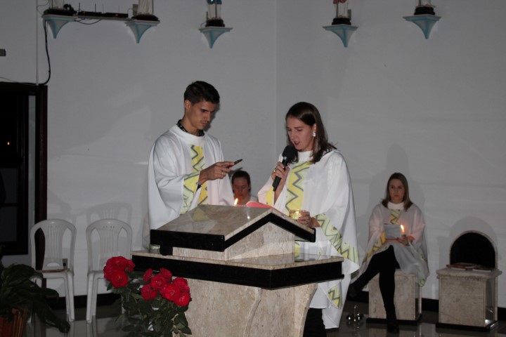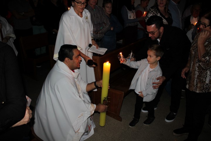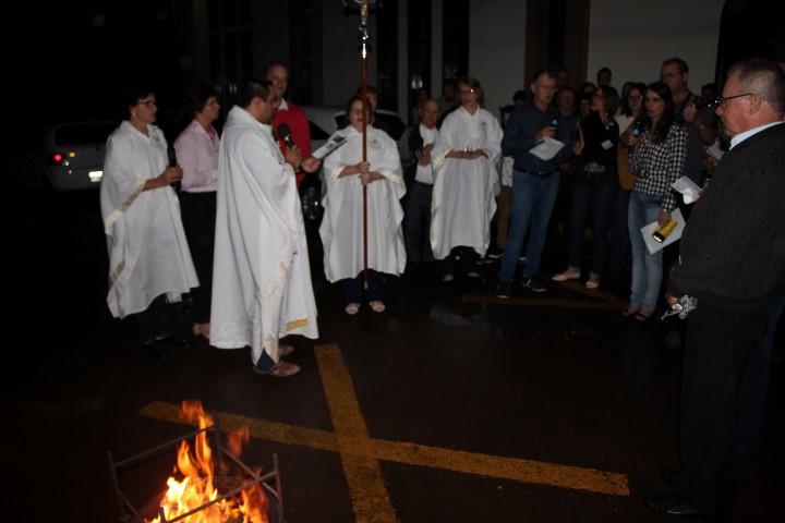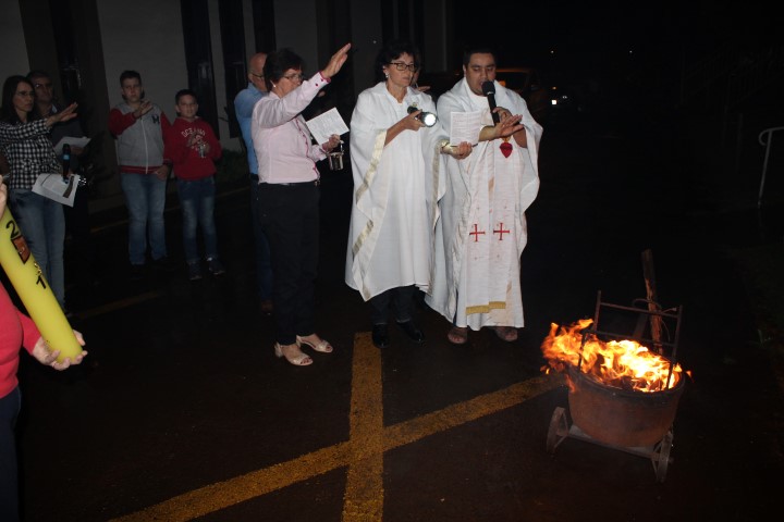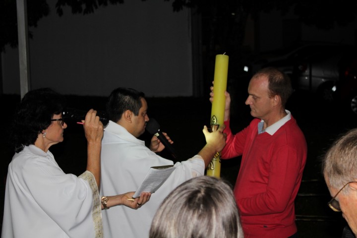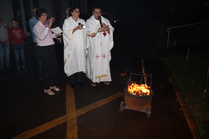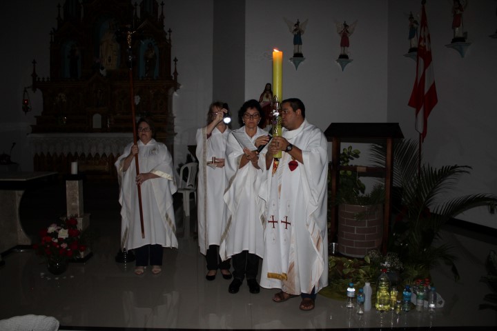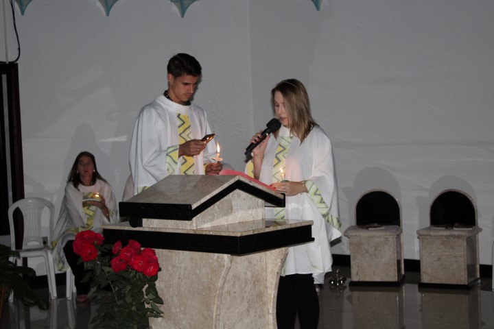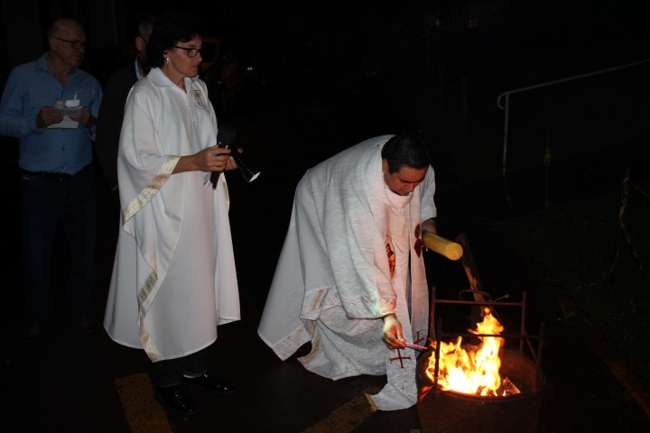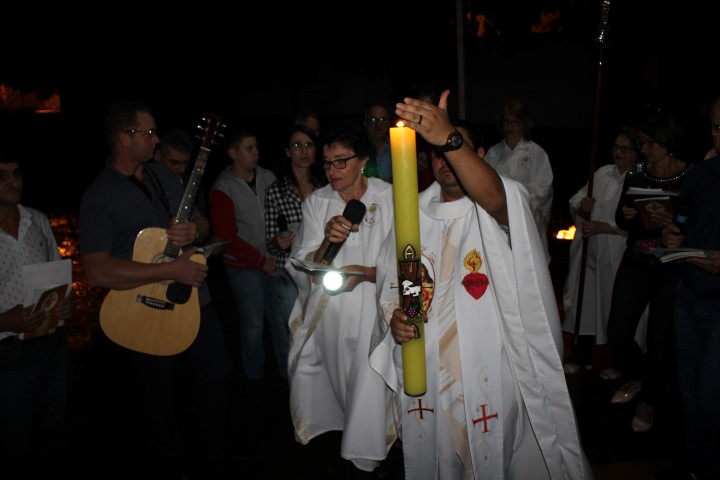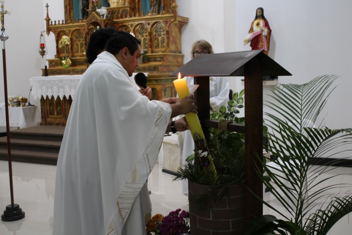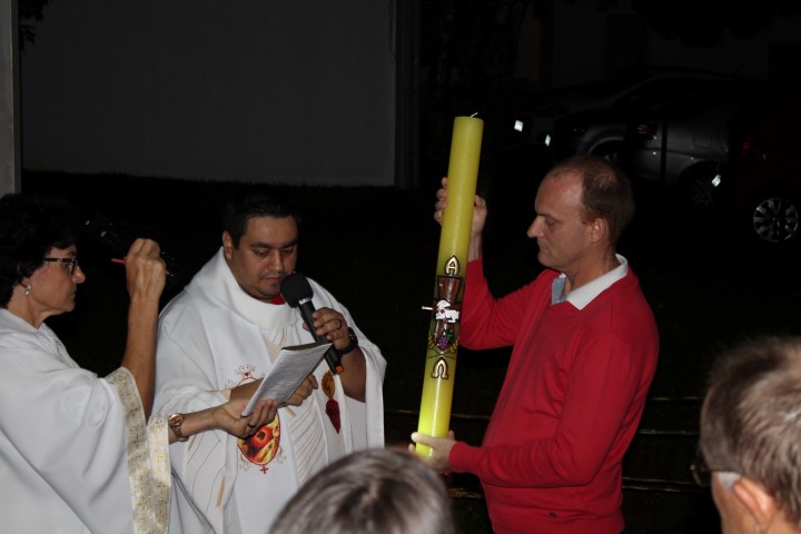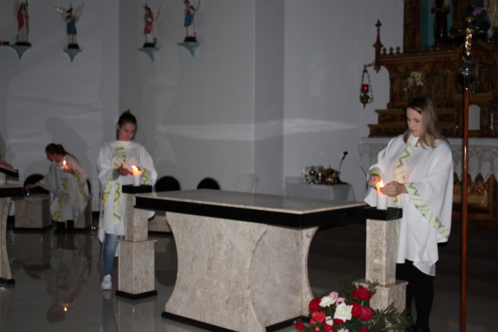 Aconteceu nesta noite do dia 20 de abril a Celebração da Vigília pascal na comunidade da matriz de Iporã do Oeste. A celebração inicia no lado de fora da igreja com a benção do fogo e em seguida foi aceso o Círio Pascal; entrou-se na igreja com a o padre carregando o Círio e canto “Eis a luz de Cristo” e o povo respondendo “Demos Graças a Deus”. Houve a proclamação das leituras; a unção da criança que iria ser batizada; as leituras do dia e o evangelho; o canto da ladainha; benção da água – batismo – e aspersão ao povo; reflexão do padre e procissão do dízimo; ofertório e comunhão; agradecimentos – canto final e benção. A equipe paroquial deseja a todos os cristãos e cristãs uma santa e feliz páscoa da ressurreição.