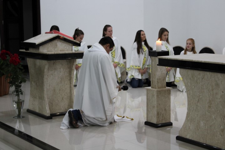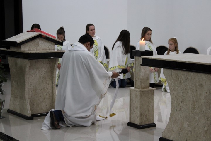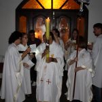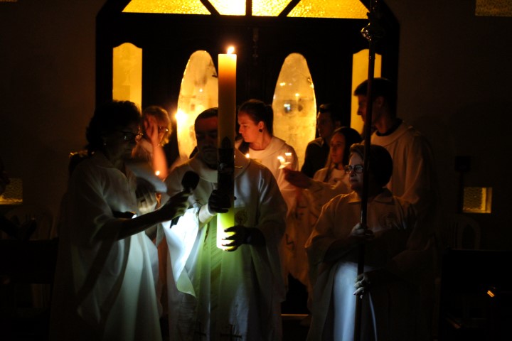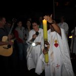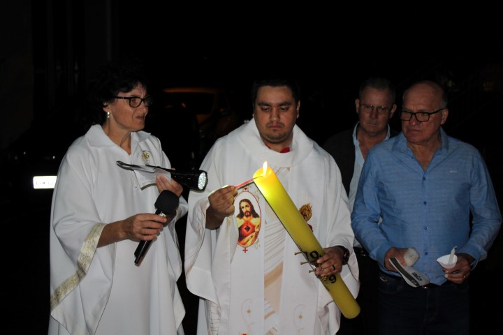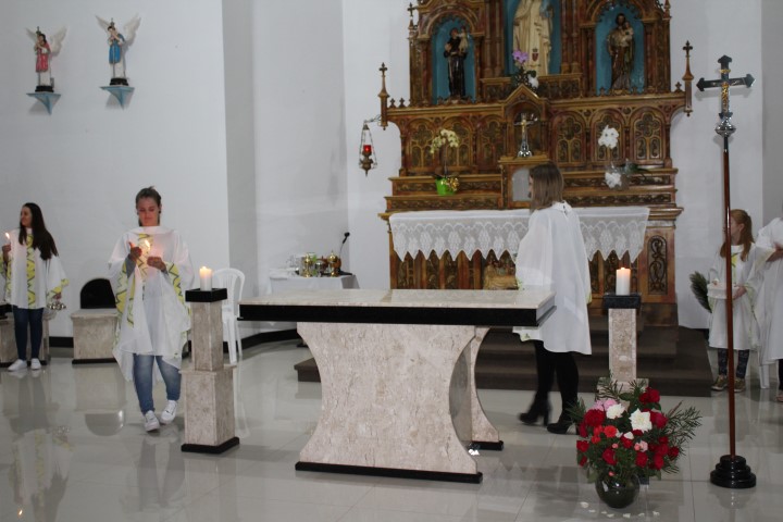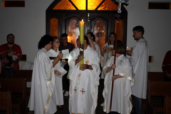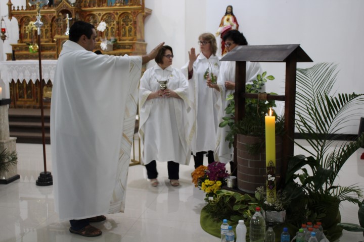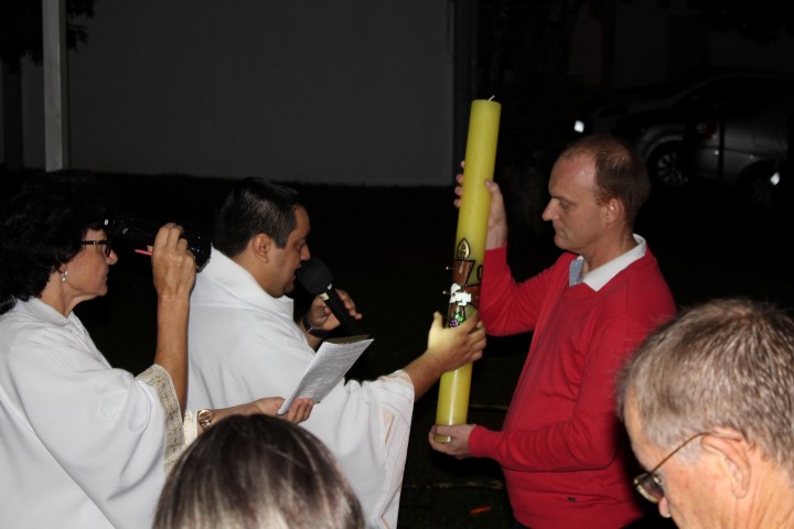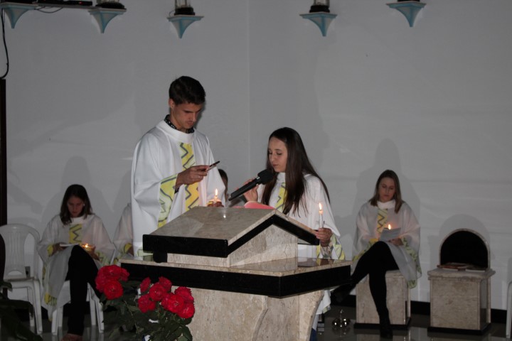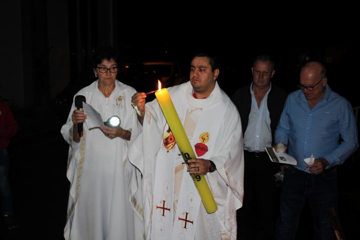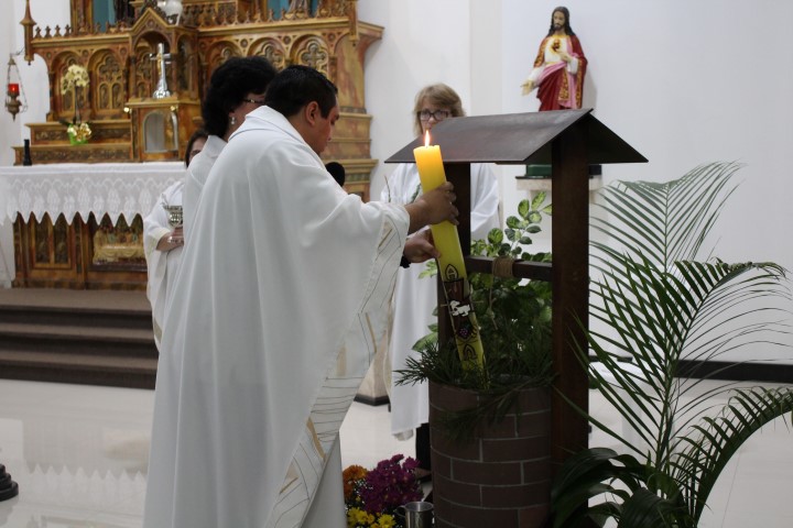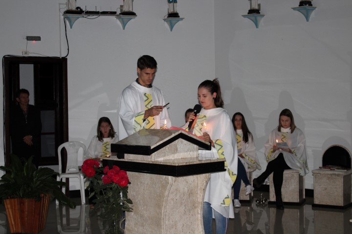 Aconteceu nesta noite do dia 20 de abril a Celebração da Vigília pascal na comunidade da matriz de Iporã do Oeste. A celebração inicia no lado de fora da igreja com a benção do fogo e em seguida foi aceso o Círio Pascal; entrou-se na igreja com a o padre carregando o Círio e canto “Eis a luz de Cristo” e o povo respondendo “Demos Graças a Deus”. Houve a proclamação das leituras; a unção da criança que iria ser batizada; as leituras do dia e o evangelho; o canto da ladainha; benção da água – batismo – e aspersão ao povo; reflexão do padre e procissão do dízimo; ofertório e comunhão; agradecimentos – canto final e benção. A equipe paroquial deseja a todos os cristãos e cristãs uma santa e feliz páscoa da ressurreição.