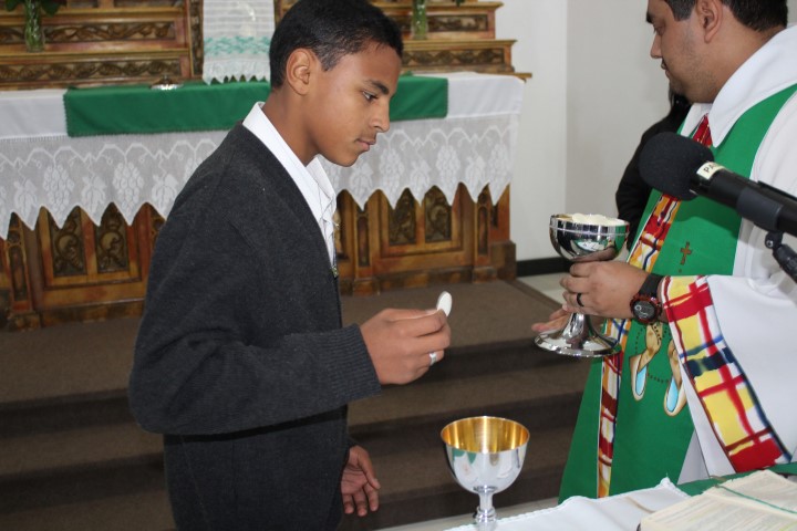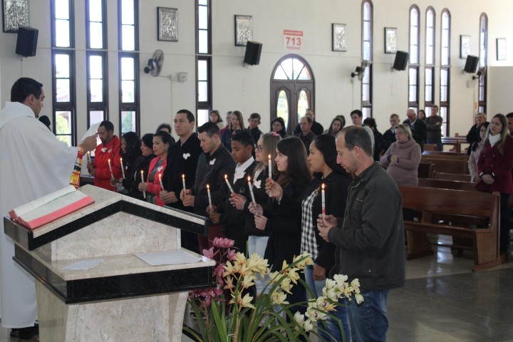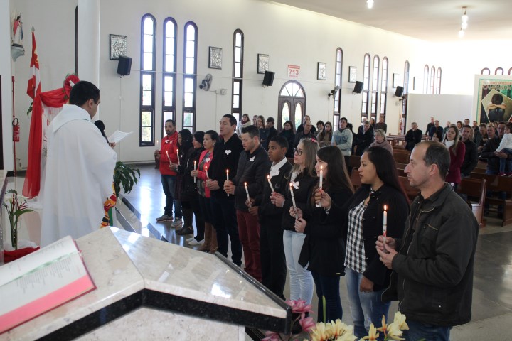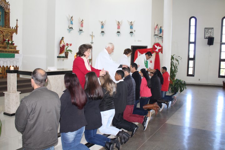Aconteceu no dia 26 de agosto, às 8:30 a celebração da primeira eucaristia e da crisma adulta na comunidade da matriz. Depois de um bom período de preparação e envolvimento dos catequizandos chega o momento de receber esse sacramento tão esperado na vida de cada um deles. A catequista Atácia que preparou estes jovens e adultos estava muito feliz pela concretização de mais um trabalho de evangelização.
