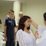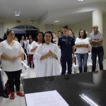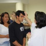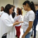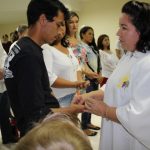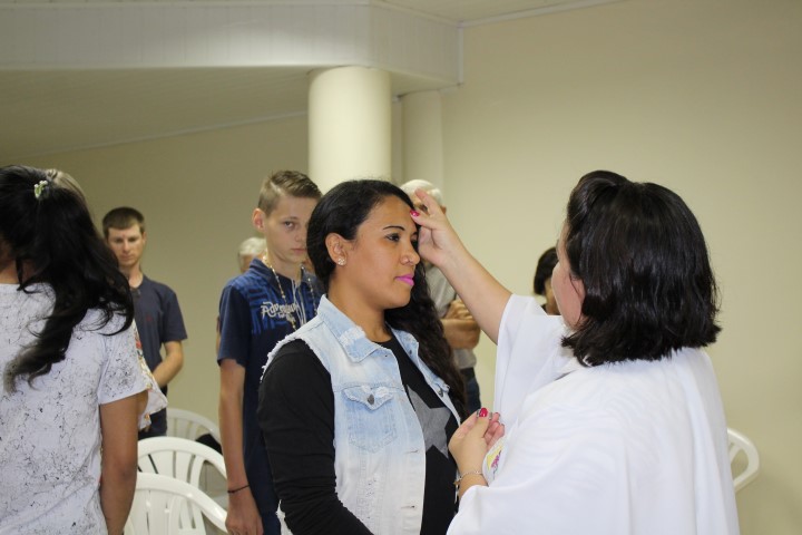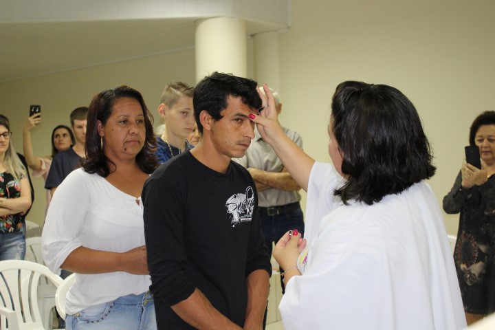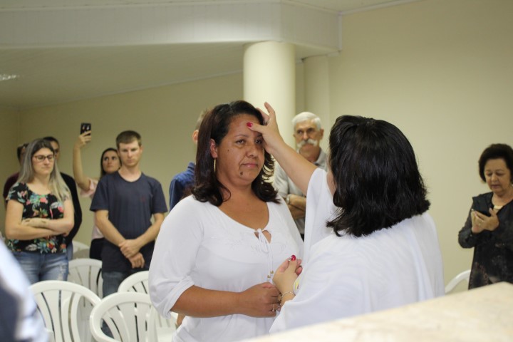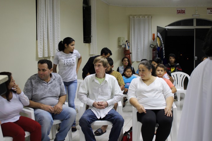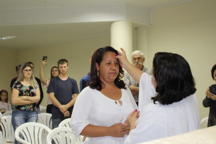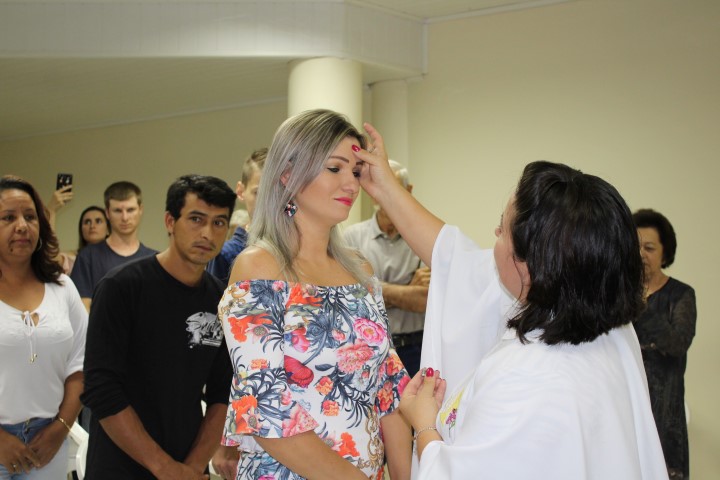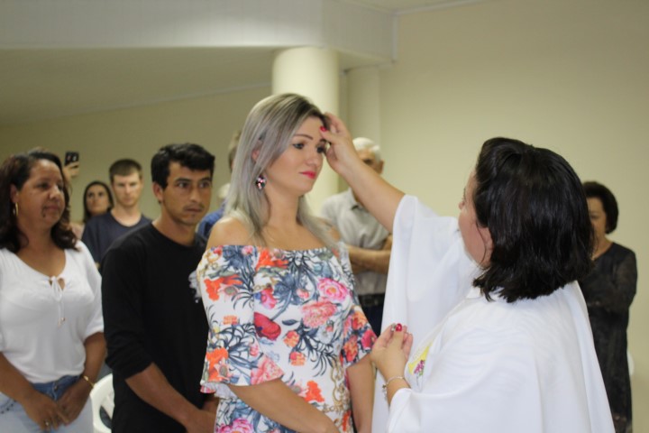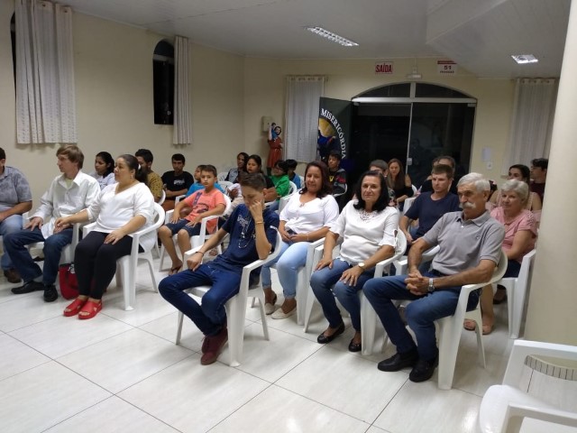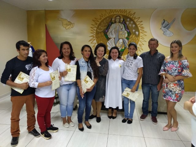 Aconteceu no dia 23 de abril na Capela da Misericórdia da comunidade da matriz a celebração do Sacramento do Batismo adulto. Depois de um bom tempo de preparação nesta noite realizou mais uma etapa da família desses adultos. A Atácia que acompanhou disse: “Hoje nossa paróquia e comunidade da matriz está em festa – com a alegria do ressuscitado. Há 5 meses estamos preparando 12 adultos entre 18 e 46 anos de idade, entre os quais 6 hoje celebram seu Batismo. Foi um momento único de graça e alegria aos olhos de todos. Uma emoção muito grande tomou conta de todos. Como catequista não consigo descrever o momento de comoção. Ainda temos para essa semana o retiro de quinta-feira, a confissão na sexta-feira e sábado dia 27 na missa da comunidade a primeira eucaristia de 8 deles e o Sacramento da Crisma da turma toda, ou seja, de 12 preparados. Essa é a segunda turma em menos de um ano já soma um total de 22 pessoas que receberam o sacramento. O que mais impressiona é a mudança visível deles. O que não tem preço. São assíduos e não faltam. Obrigado meu Senhor”! e conclui ela.
