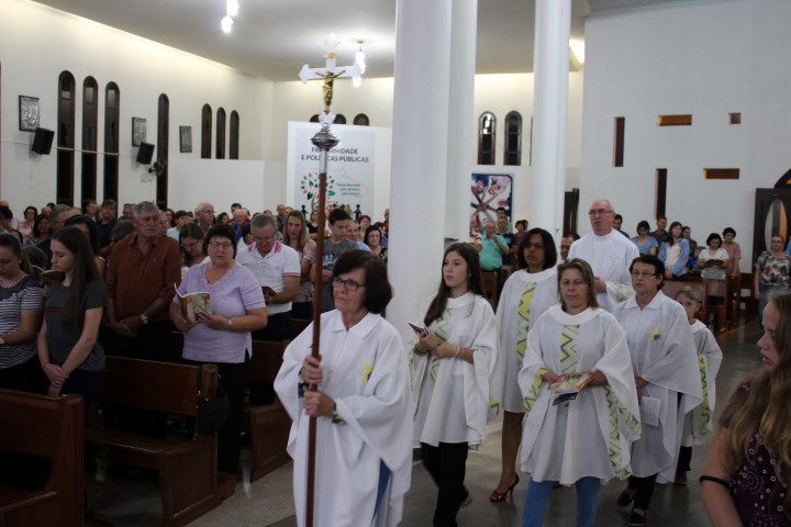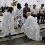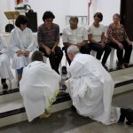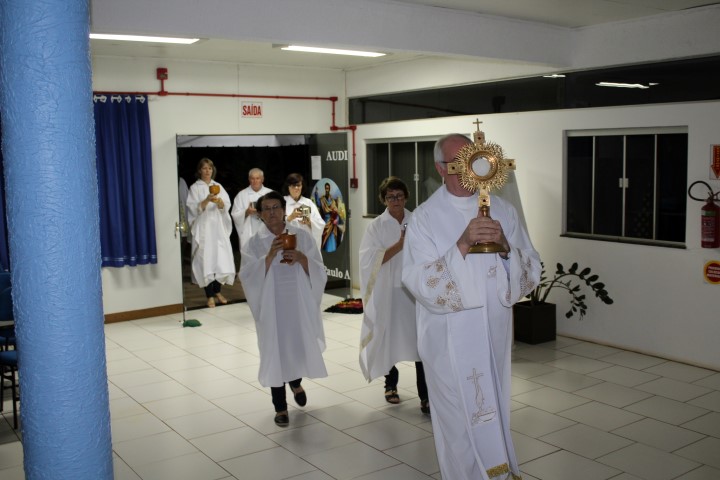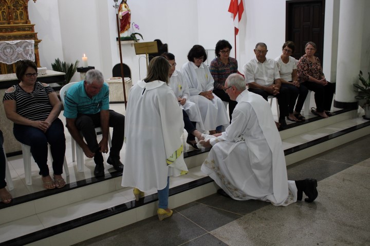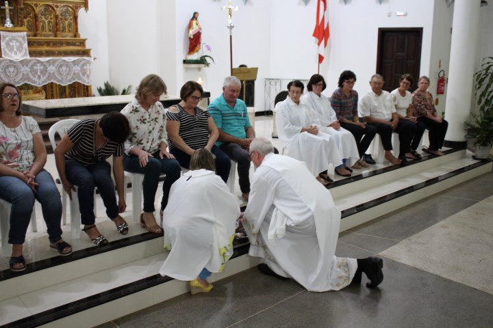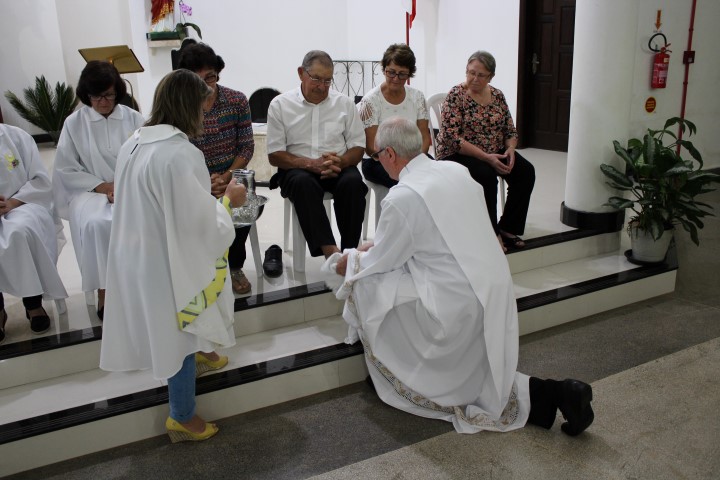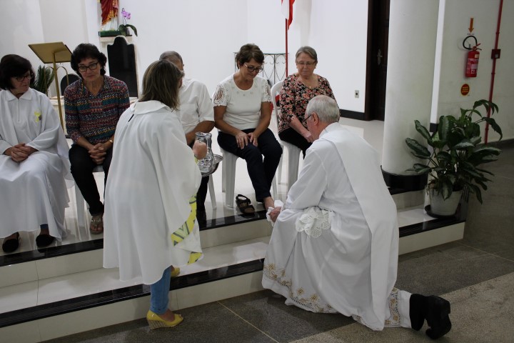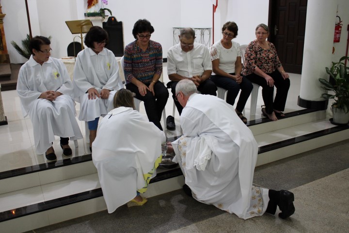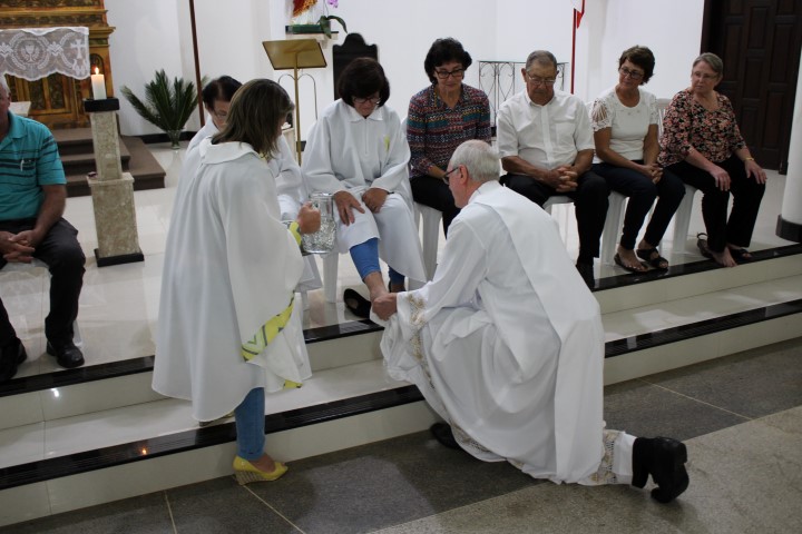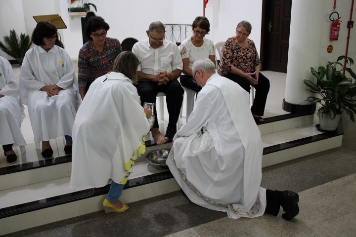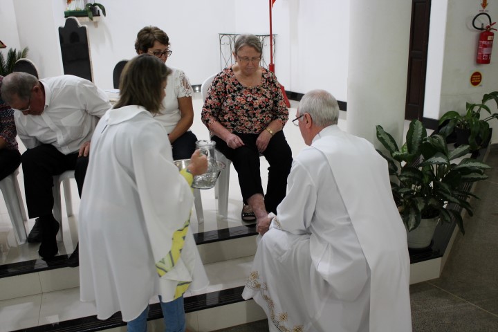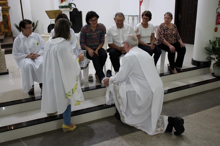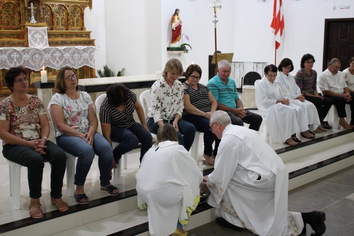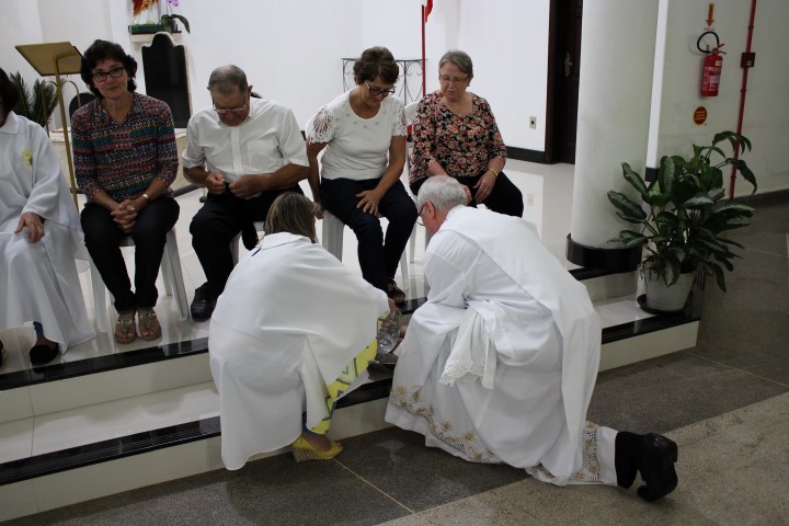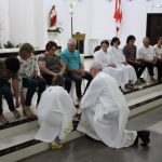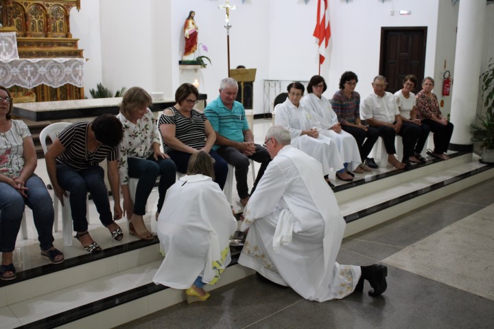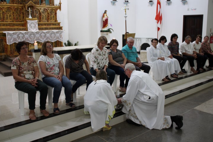 Aconteceu no dia 18 de abril a celebração do lava-pés na comunidade da matriz presidida pelo padre Geraldo Kolling. Quinta feira conhecida como dia em que Jesus realizou a última ceia com os 12 apóstolos e nesta celebração a Igreja faz memória desse momento. O padre lavou os pés dos ministros da comunidade da matriz. Logo a após a celebração aconteceu a Transladação do Santíssimo até o Auditório Paulo Apóstolo para os momentos de adoração.