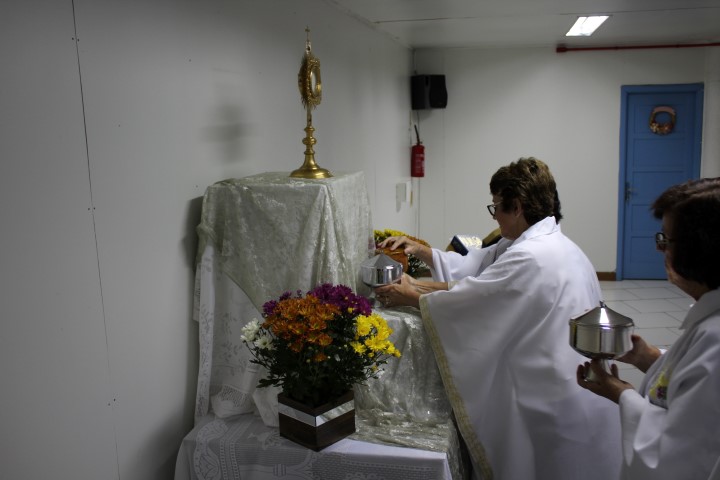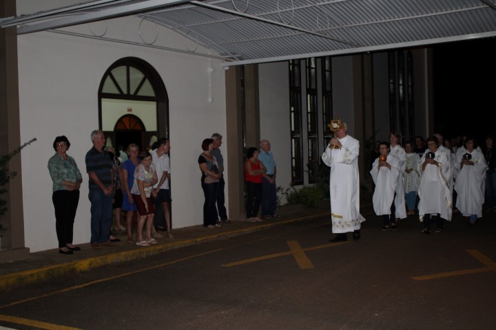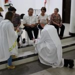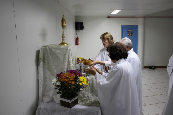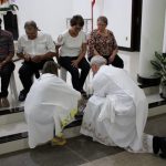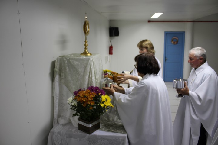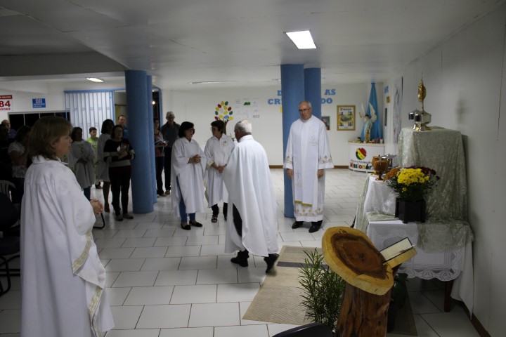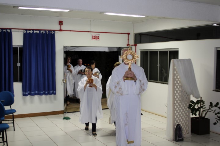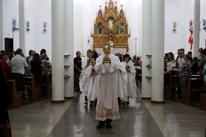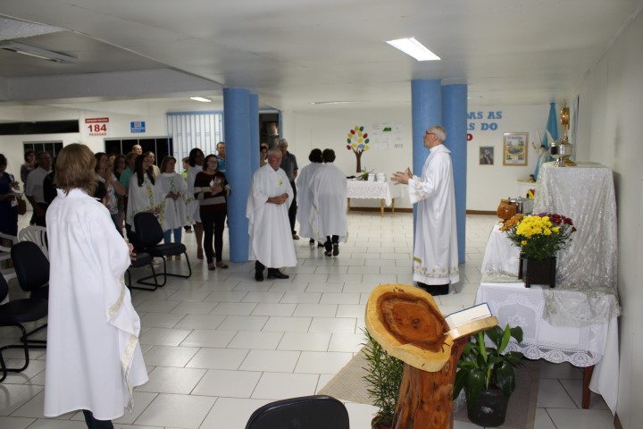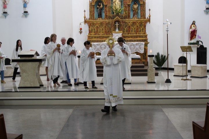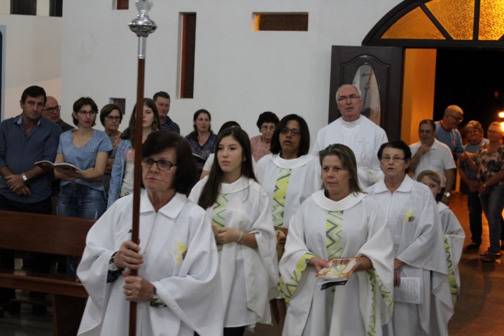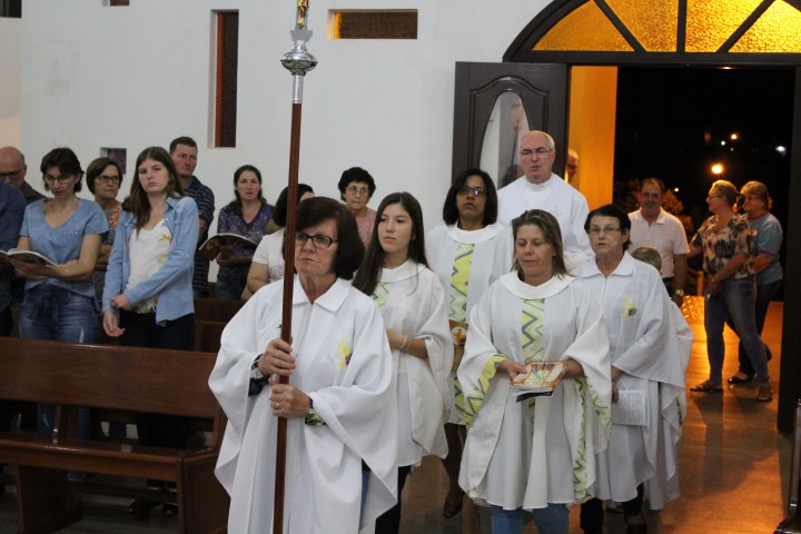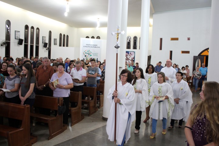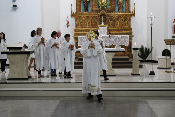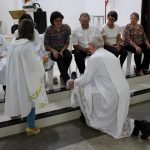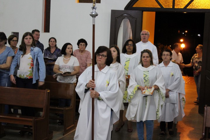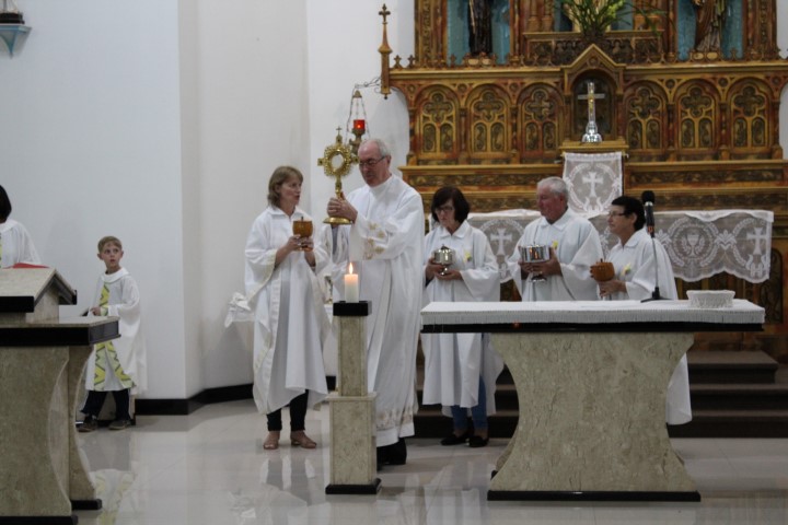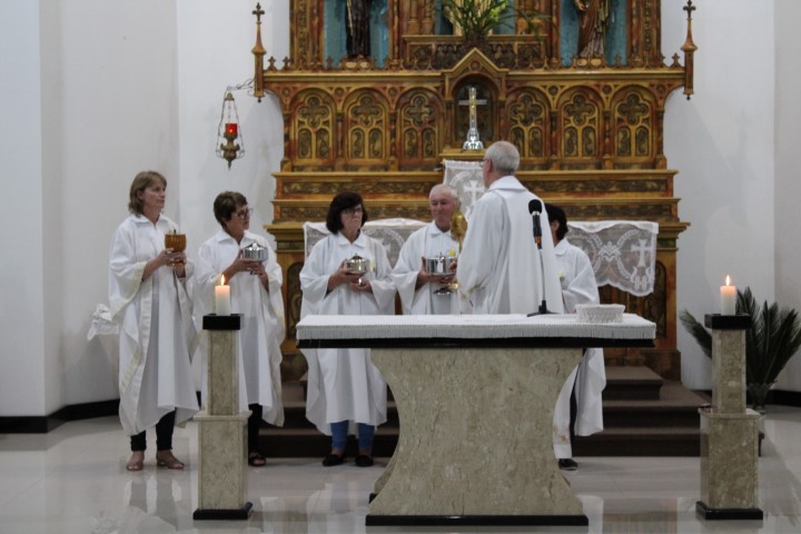 Aconteceu no dia 18 de abril a celebração do lava-pés na comunidade da matriz presidida pelo padre Geraldo Kolling. Quinta feira conhecida como dia em que Jesus realizou a última ceia com os 12 apóstolos e nesta celebração a Igreja faz memória desse momento. O padre lavou os pés dos ministros da comunidade da matriz. Logo a após a celebração aconteceu a Transladação do Santíssimo até o Auditório Paulo Apóstolo para os momentos de adoração.