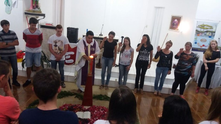 Aconteceu no dia 20 de abril, quinta-feira às 19:30 horas, na Comunidade São Vendelino a celebração do Sacramento da Reconciliação em preparação ao Sacramento da Crisma dos adolescentes e jovens das seguintes comunidades: Piraju, Pavão, Macucozinho, Esperança e São Vendelino. Era uma celebração rica em símbolos e realizada pelos próprios crismandos. Participaram os pais, as catequistas, acompanhantes e a comunidade de São Vendelino que acolheu as demais comunidades e ficou com a organização geral da celebração.