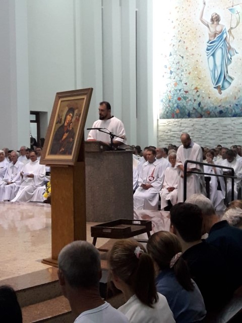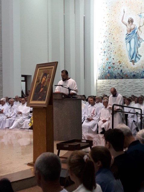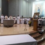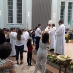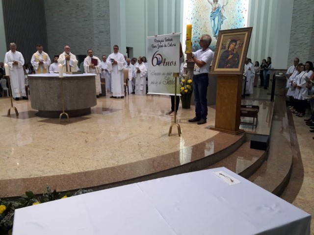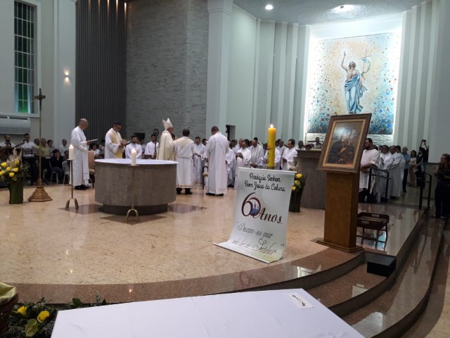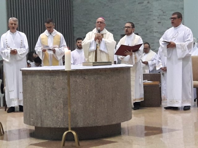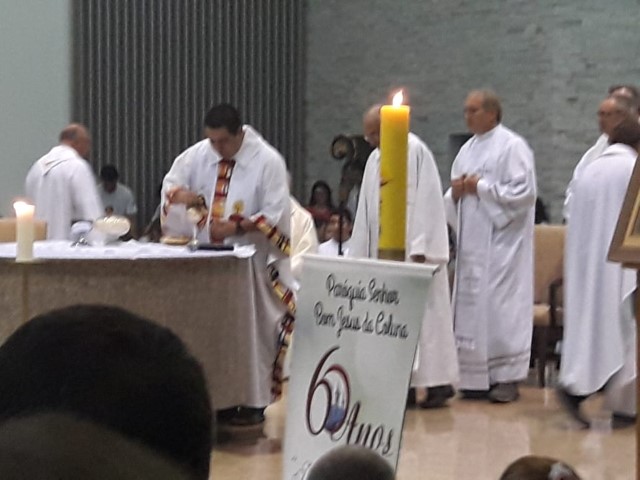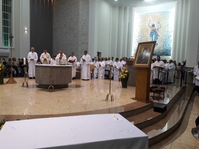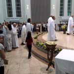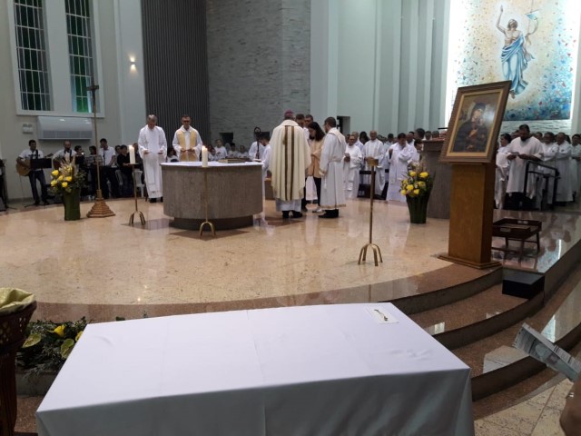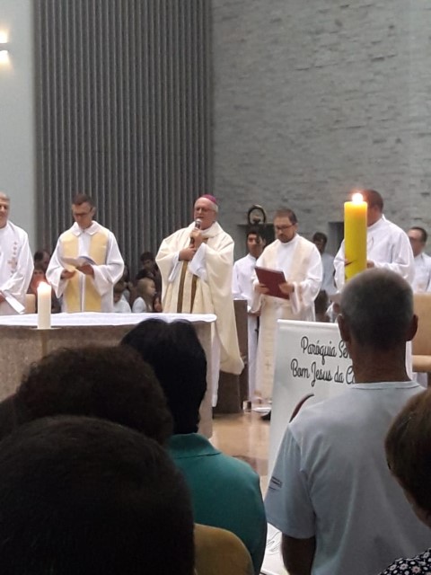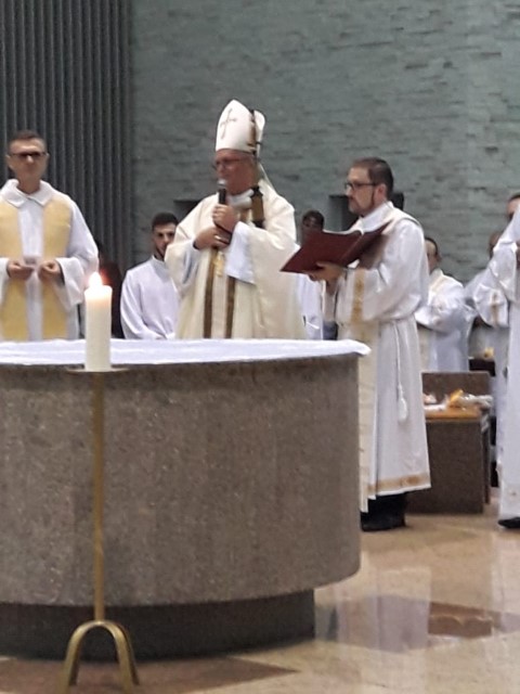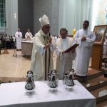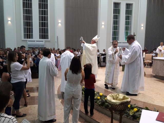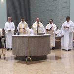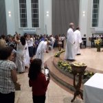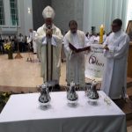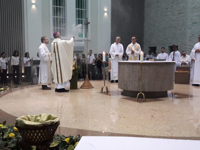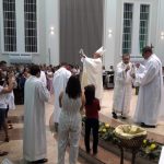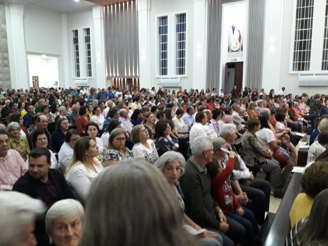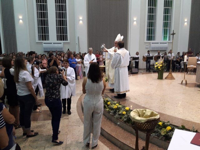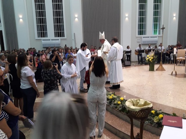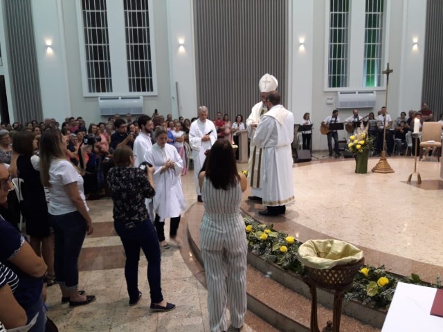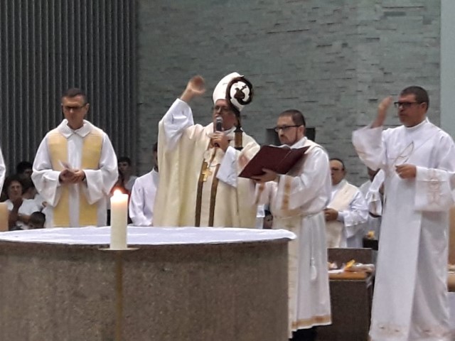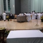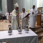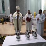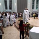Aconteceu no dia 17 de abril na paróquia de Xanxerê a celebração dos Santos Óleos e da unidade da Santa Igreja. É chamada de “Missa do Crisma” ou “Missa Crismal” onde se abençoam os óleos dos catecúmenos e dos enfermos e a consagração do Santo Crisma. Também acontece a renovação das promessas sacerdotais pronunciadas no dia da ordenação de cada presbítero, por isso se diz que é a “Missa da Unidade”. De nossa paróquia fomos em três pessoas para participar desse momento importante de nossa igreja. Esteve na celebração a Mariane, a Leonita e o Olavio que disse: “Senti um forte sentimento de fé e devoção do povo presente. A celebração bem elaborada e conduzida pela equipe de liturgia e canto com momentos fortes de reflexão ao verdadeiro sentido do cristão.