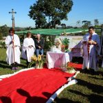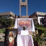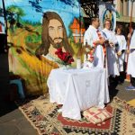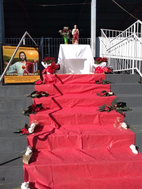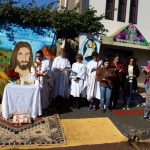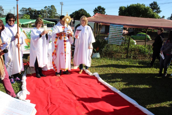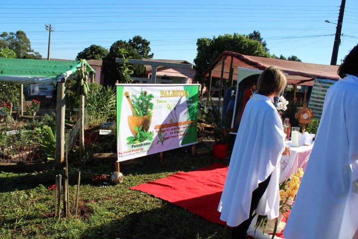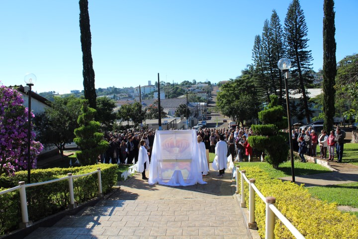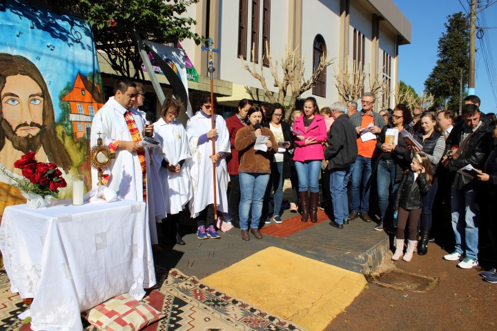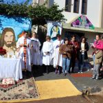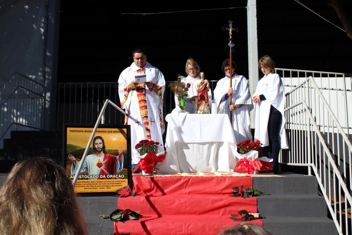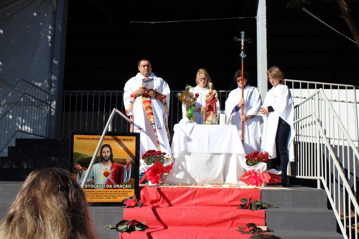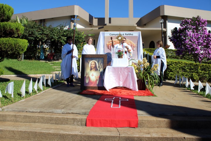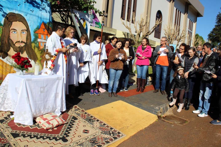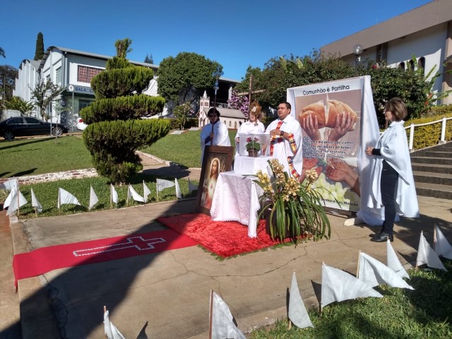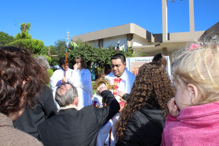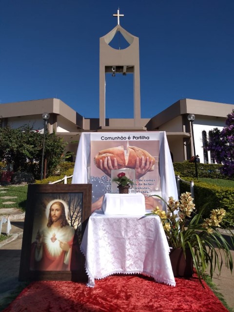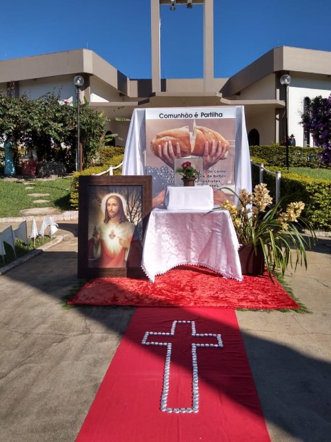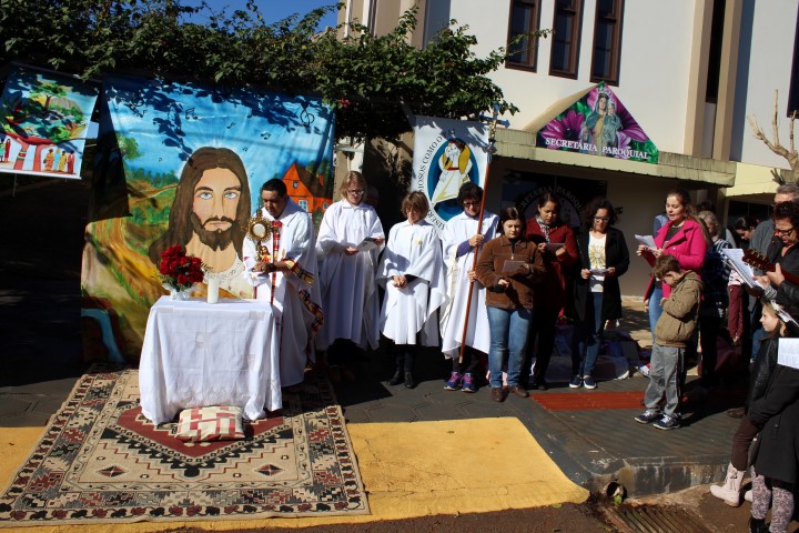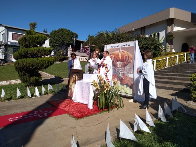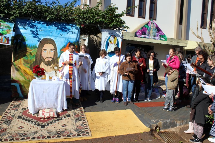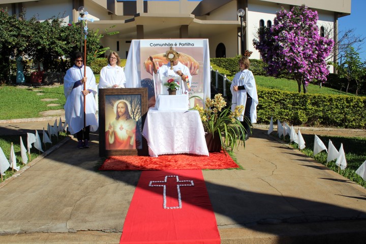 Aconteceu no dia 20 de junho na comunidade da matriz às 9:00 horas da manhã a celebração e a procissão de Corpus Christi. As lideranças da comunidade organizaram bem a celebração e as quatro paradas que houve na procissão. A Primeira Parada o Apostolado da Oração fez referente a festa do sagrado coração de Jesus. A Segunda Parada foi organizada pela Pastoral de Conjunto, especificamente a Pastoral da Saúde que procurou mostrar o cuidado que devemos ter com a nossa saúde – as lideranças mostraram Horto das Ervas Medicinais que a paróquia construiu com a ajuda de muitas mãos. As Catequistas preparam a Terceira Parada referente a Iniciação a Vida Cristã que aconteceu em frente à secretaria paroquial – expressaram o processo dos encontros com crianças, adolescentes, jovens e adultos na catequese. A Quarta Parada se realizou em frente à igreja – o cenário foi sobre a Eucaristia e neste espaço aconteceu a benção final.