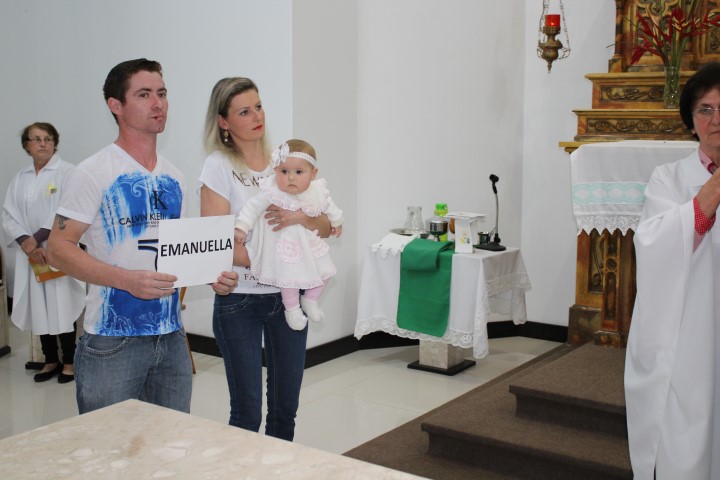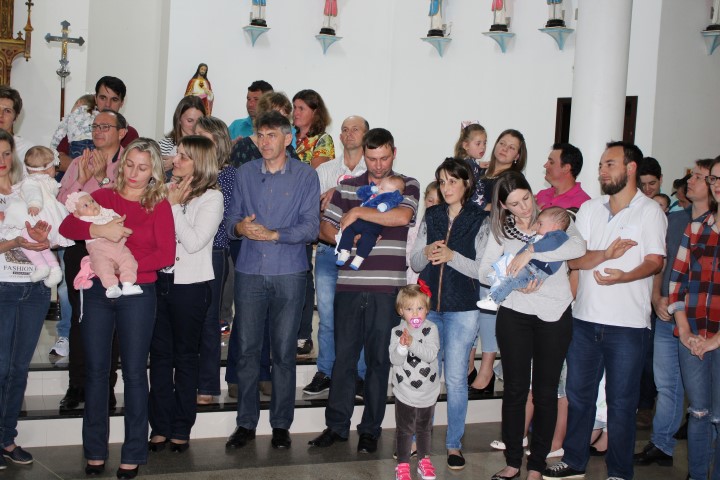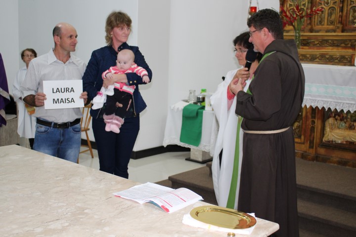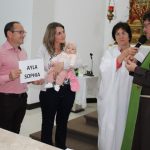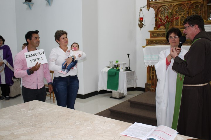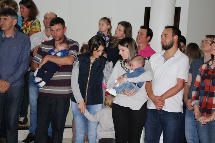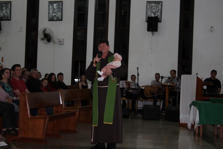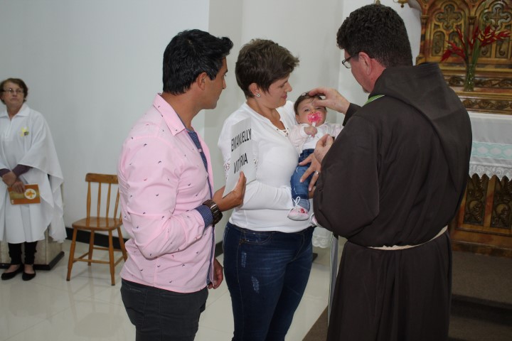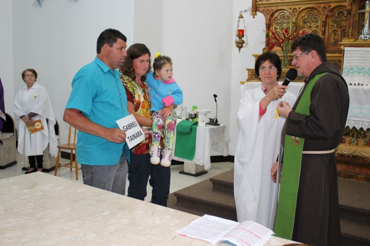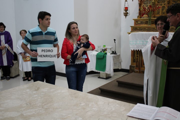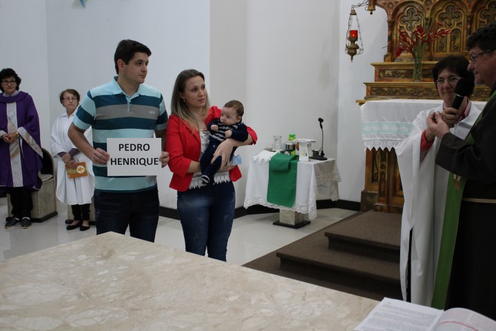 Aconteceu dia 06 de outubro na comunidade da Matriz a celebração preparada pelos jovens e na mesma ocasião os pais apresentação/consagraram suas crianças à Deus. A ministra Beatriz comenta sobre o sacramento do Batismo dizendo: “O Batismo é o primeiro Sacramento que recebemos. É como a porta que abre para os tesouros do amor de Deus, mas precisamos crescer cada vez mais neste amor, para que a nossa vida seja cada vez mais parecida com a de Jesus Cristo. O Batismo nos torna: Filhos de Deus; Irmãos de Jesus; Morada do Espírito Santo; Membros da Igreja. O Batismo apaga o pecado original e nos dá a semente da graça: O Pai, o Filho e o Espírito Santo vêm morar em nós”.