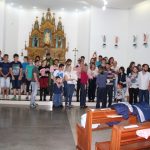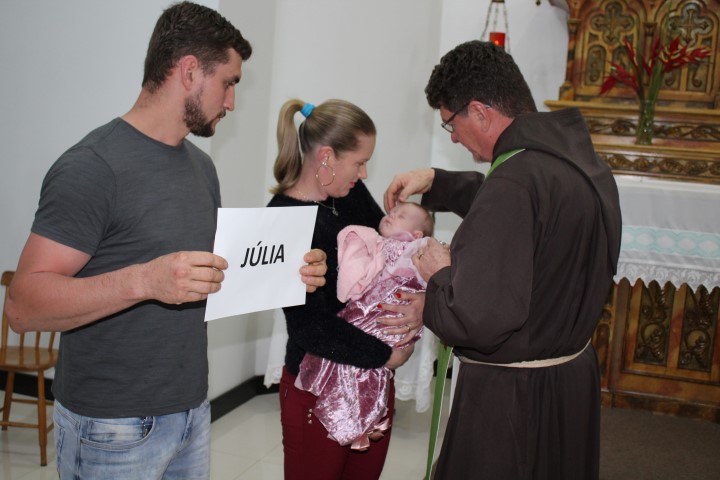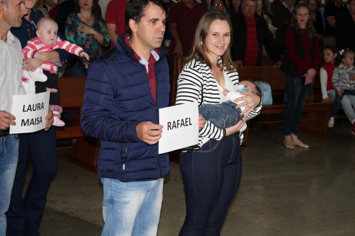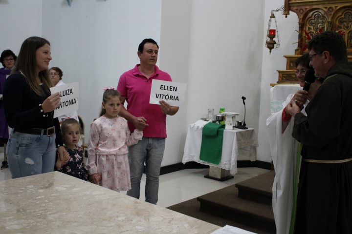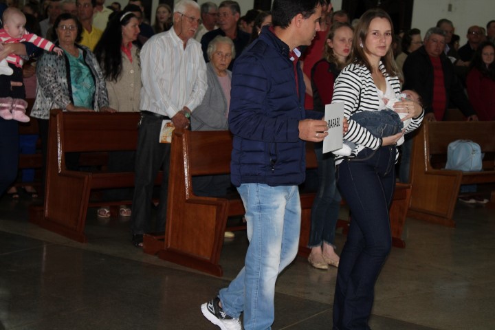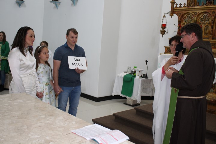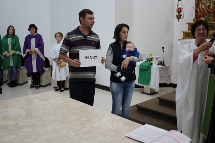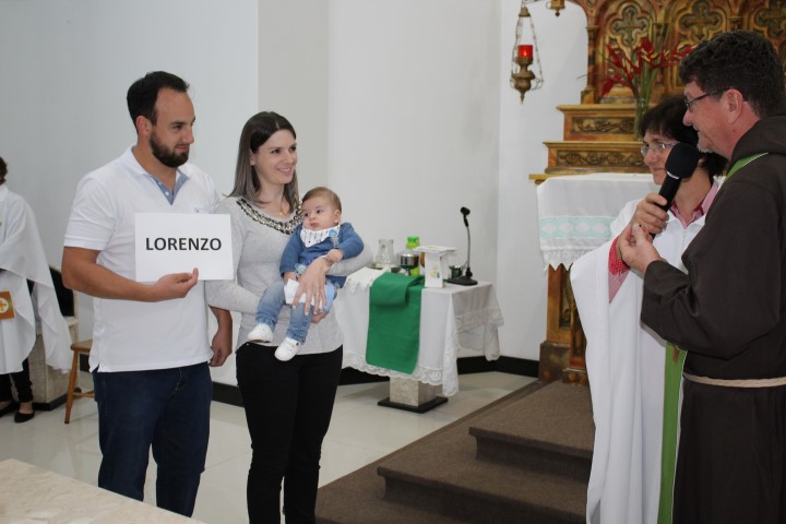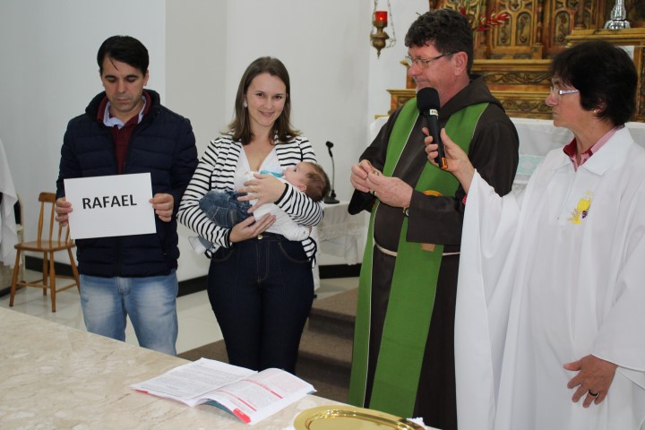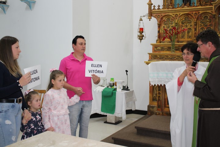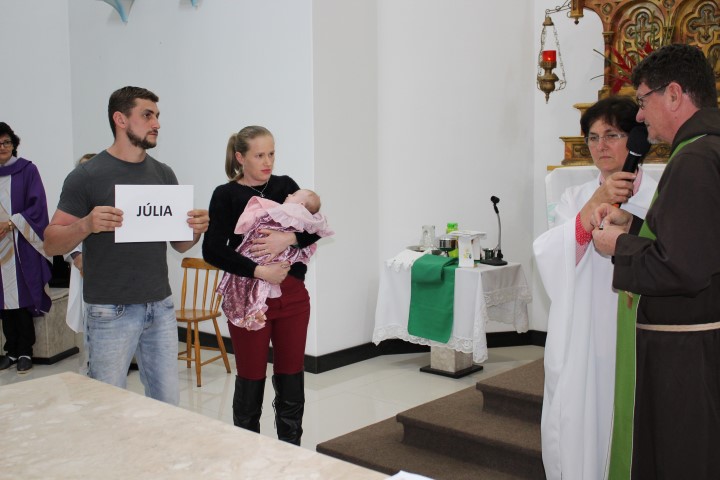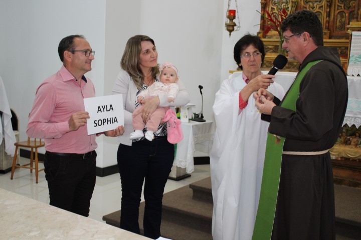Aconteceu dia 06 de outubro na comunidade da Matriz a celebração preparada pelos jovens e na mesma ocasião os pais apresentação/consagraram suas crianças à Deus. A ministra Beatriz comenta sobre o sacramento do Batismo dizendo: “O Batismo é o primeiro Sacramento que recebemos. É como a porta que abre para os tesouros do amor de Deus, mas precisamos crescer cada vez mais neste amor, para que a nossa vida seja cada vez mais parecida com a de Jesus Cristo. O Batismo nos torna: Filhos de Deus; Irmãos de Jesus; Morada do Espírito Santo; Membros da Igreja. O Batismo apaga o pecado original e nos dá a semente da graça: O Pai, o Filho e o Espírito Santo vêm morar em nós”.