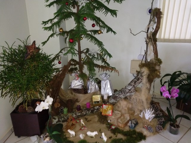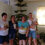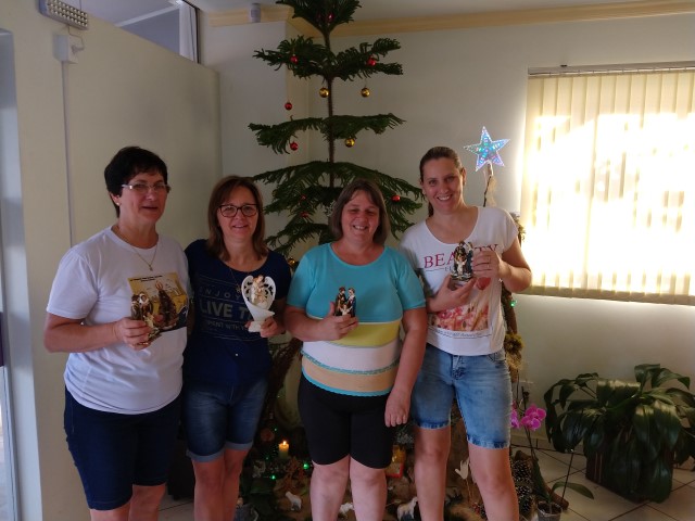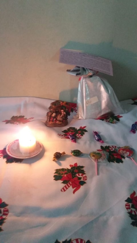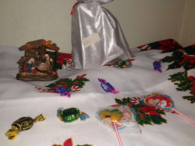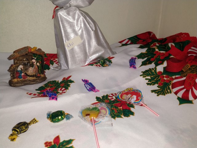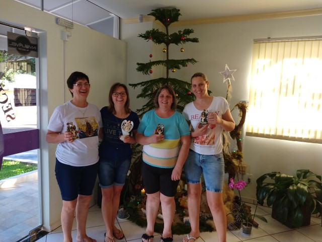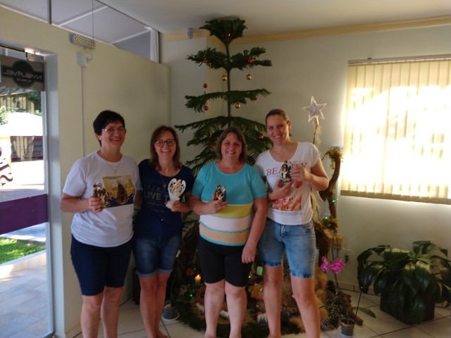 A Mariane, a Lenirce, a Beatriz e a Elsi receberam um mimo da paróquia e da comunidade da matriz. A lembrança foi alguns bombons e a imagem da Sagrada Família.
