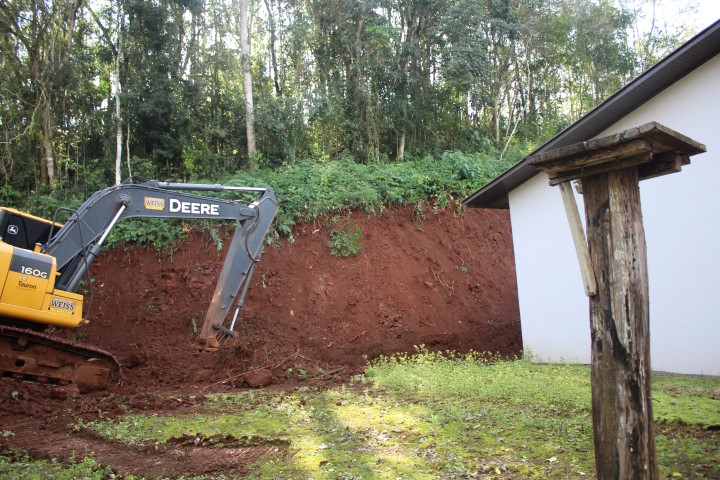 A comunidade de Pavão resolveu fazer uma drenagem por trás da igreja. Era um problema muito antigo que precisava ser resolvido. Pois quando chovia vertia muita água em frente à igreja e por isso iniciaram uma drenagem para escoar a água.