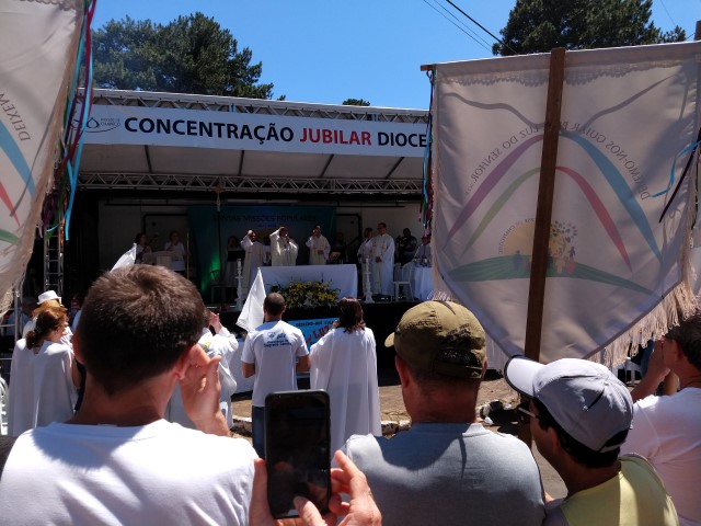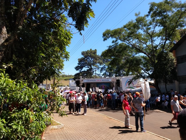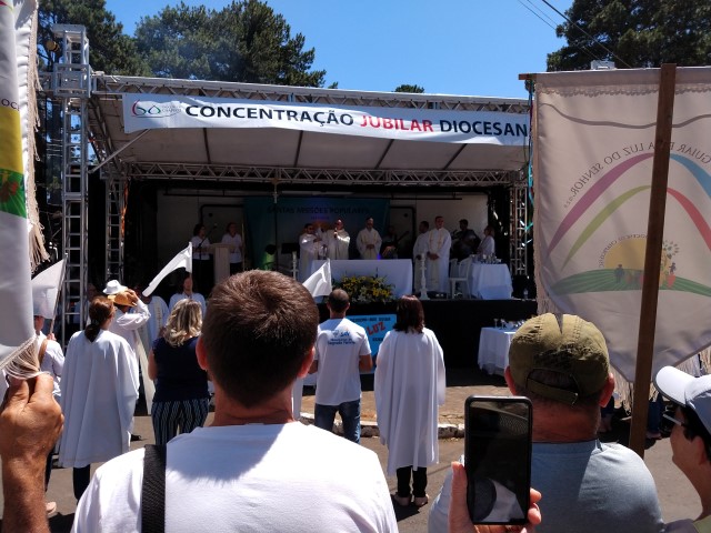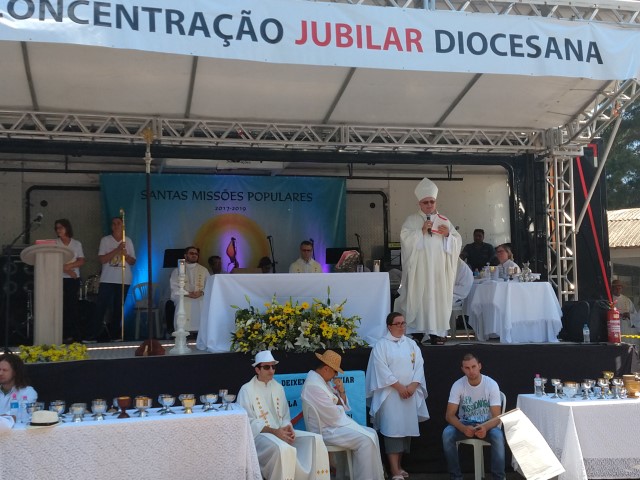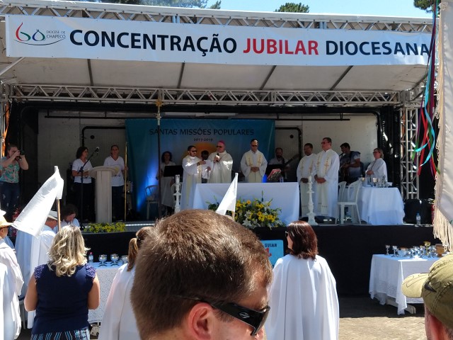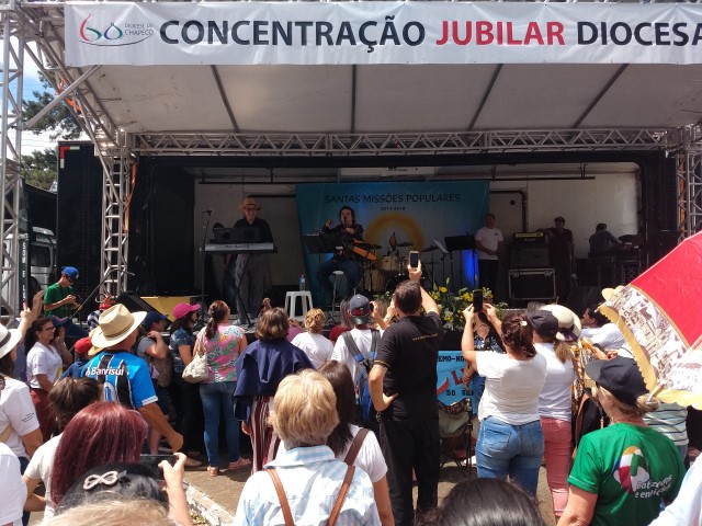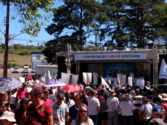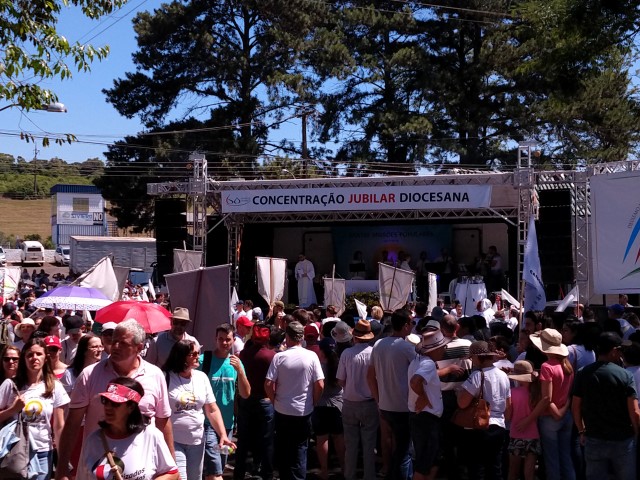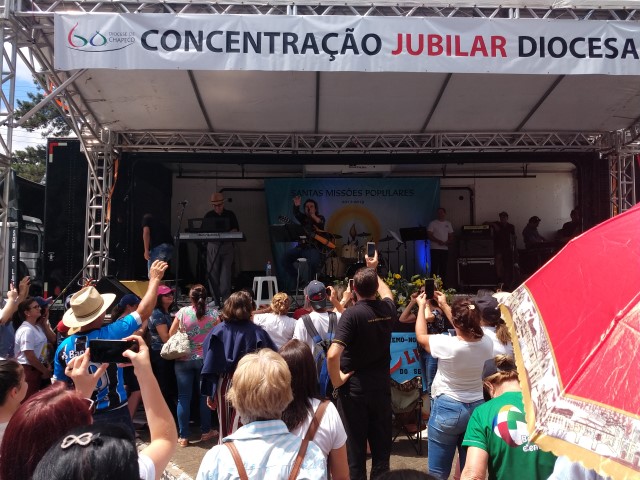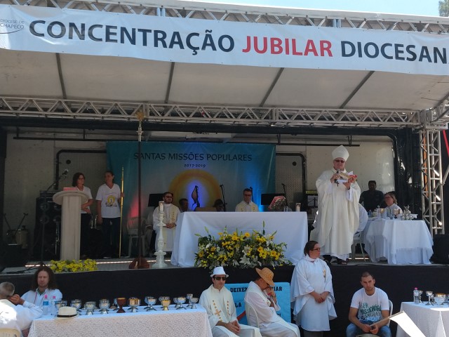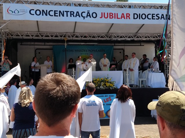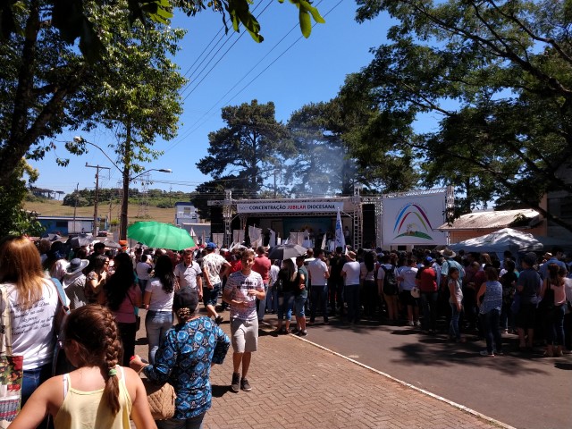 No dia 24 de novembro aconteceu em Xanxerê no parque da FEMI a Concentração Jubilar Diocesana dos 60 anos. Houve a acolhida das comunidades, a caminhada até a FEMI, em seguida a celebração, o almoço partilhado em que cada liderança trouxe para juntos comermos, os cantos com a equipe da juventude, show com João Chagas Leite, o sorteio da ação entre amigos que saiu para os ganhadores de Xanxerê, São José do Cedro e a camionete para Xavantina, o envio missionário pelo Dom Odelir. Queremos agradecer nossas lideranças leigas que não mediram esforços para ir nessa concentração, deixaram seus afazeres para então participarem nesse momento tão importante de nossa diocese, valeu muito apena, pois é nossa história também, é uma renovação do espírito missionário e que ainda vale apena continuarmos nossa missão de batizados/enviados.