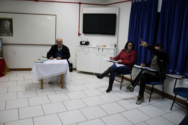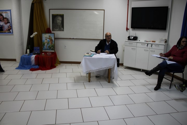 O Conselho de Evangelização comunitário da matriz nesta noite reuniu-se para realizar sua última reunião, pois no próximo encontro a comunidade terá um novo conselho de pastoral. Claro que algumas lideranças continuam, mas sempre surgem novas lideranças que continuam a caminhada de fé da comunidade. Foi um momento de muitos agradecimentos e de satisfação das lideranças por terem essa oportunidade de conduzir os trabalhos pastorais e burocráticos da comunidade da matriz. Houve muitas partilhas e declarações de que foi um tempo muito gratificante e de muita experiência. Lembrou-se das pessoas que foram indicados para o novo conselho. O coordenador, a secretaria e o tesoureiro agradeceram as pastorais e a paróquia pela oportunidade e caminhada feita. O padre Osni agradeceu por cada um que deu o sei SIM de doação por assumirem essa missão junto à comunidade. O padre disse que quem entra nessa caminhada deve trabalha pela/para e com a comunidade cristã de fé.