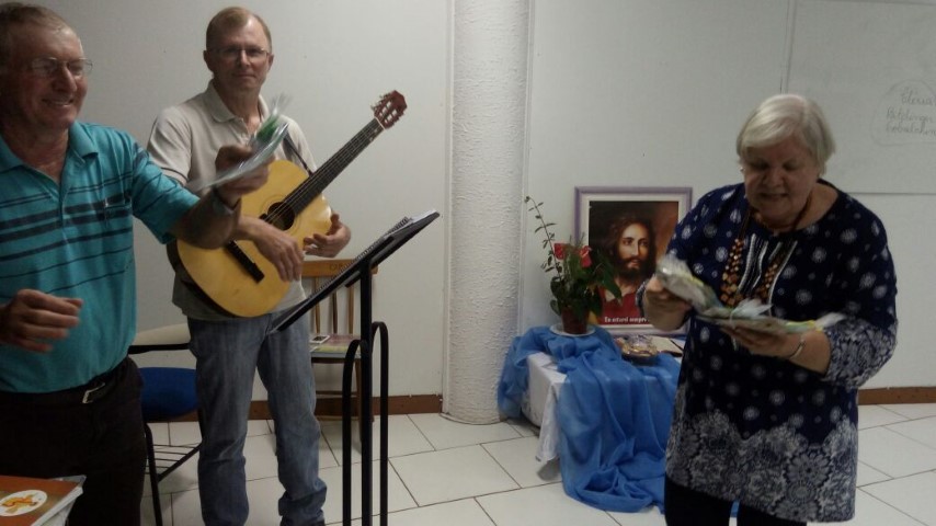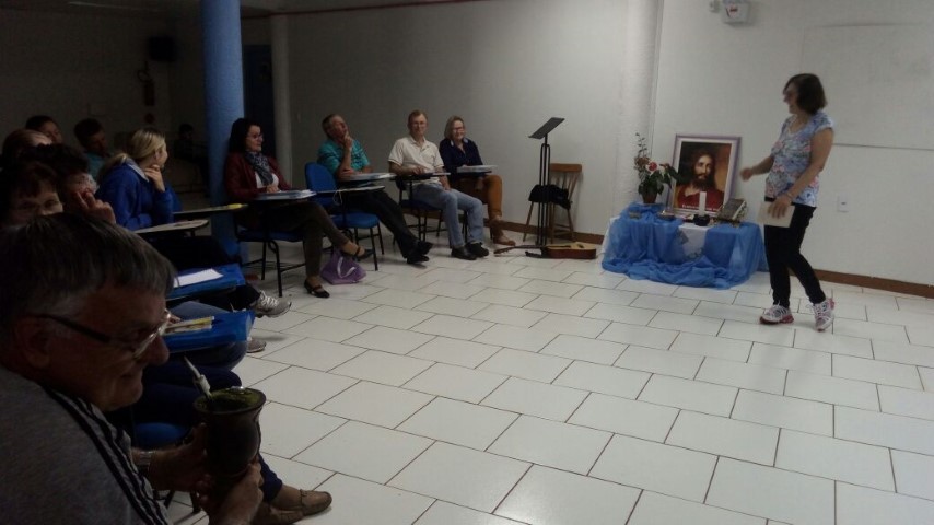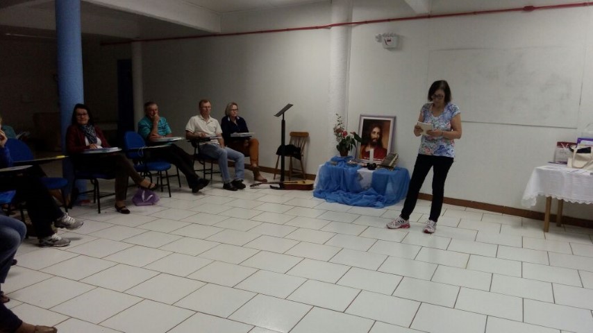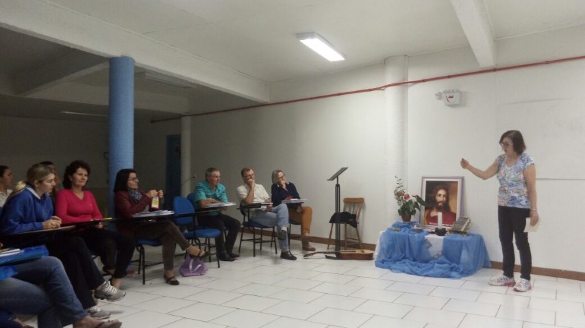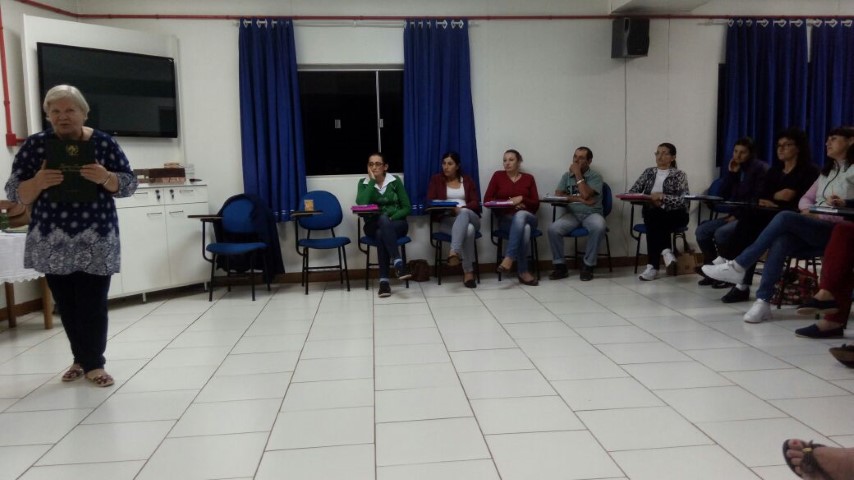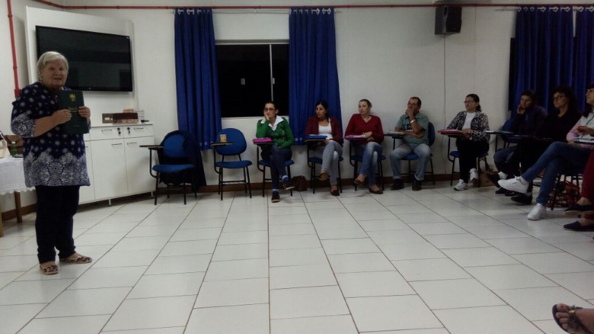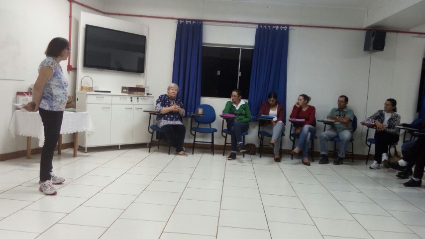 Verene pediu dois representantes de cada pastoral que fazem parte da Pastoral de Conjunto. Foram escolhidas duas pessoas para capacitação em Cunha Porã dia 27 de setembro. Também na noite de formação com Cléria os lideres preencheram as fichas do Guia do Líder e o Livro Ouro. No final do encontro Cléria e Hilário fizeram homenagem aos pais e entregaram uma lembrancinha para cada um. O próximo encontro será dia 09 de setembro às 19 horas no auditório da Matriz.