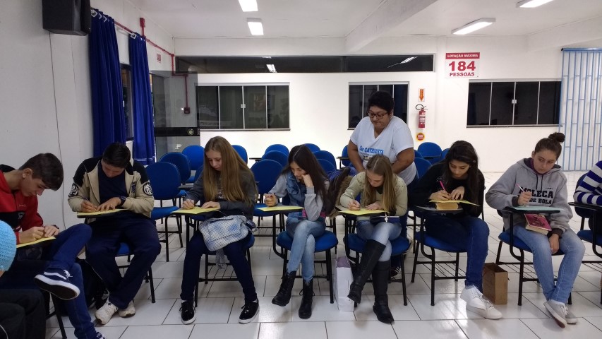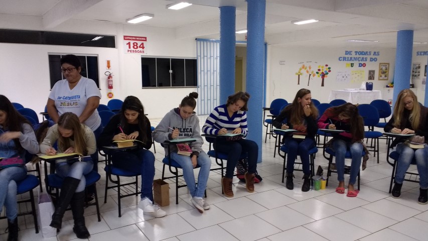 Houve o encontro com os catequizandos da crisma nos últimos dias com os seguintes assuntos: conhecer um pouco da palavra de Deus – a Bíblia. O outro tema era sobre a oração do creio que em todas as celebrações os fiéis professam dizendo: creio em Deus Pai… As turmas de catequese eram do grupo dos Profetas e da Utopia.