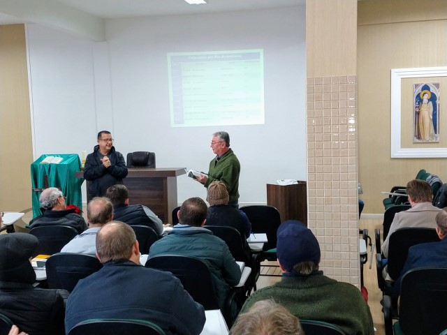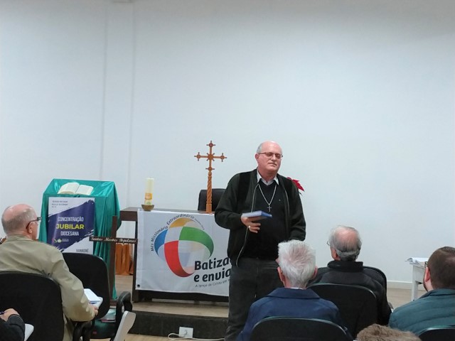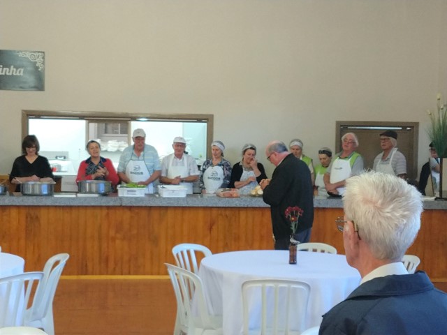Aconteceu nos dias 05, 06 e 07 de agosto na Paróquia de São Lourenço do Oeste o encontro do presbitério diocesano e das administradoras paroquiais. Todos os padres e irmãs foram acolhidos com o almoço num camping. A tarde houve jogos de cartas e futebol, e o dia encerrou com a janta. Na terça feira dia 07 de agosto tivemos a oração inicial motivada pela RP de Seara e em seguida houve a apresentação dos padres e irmãs. Na sequência o padre Clair falou do cronograma e após o Bispo Dom Odelir acolheu a todos/as. Padre Ivo Oro apresentou o segundo livro sobre Reflexões Dominicais do ANO A, o nome do livro é: “O grão de Mostarda”. Depois o padre Marlo falou do calendário das Pré-Assembleias nas regiões pastorais. Também houve a assessoria do professor Antônio Andrioli da UFFS. A noite tivemos a celebração com todos os padres paramentados na comunidade da matriz. E na quarta feira dia 07 de agosto iniciou a manhã com a oração preparada pela RP de Itapiranga e os diversos assuntos sobre a caminhada de nossa Igreja diocesana. O conselho da comunidade deu um mimo para os padres e as administradoras das paróquias e o encontro encerro com o almoço.