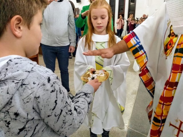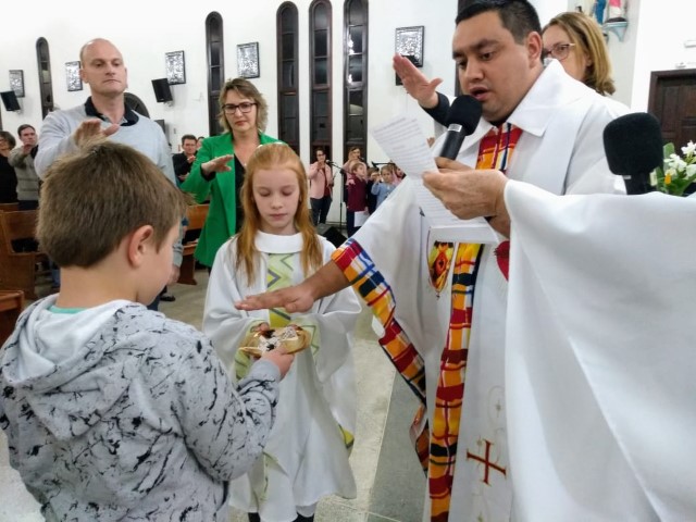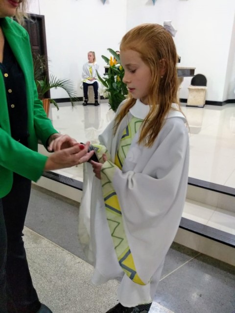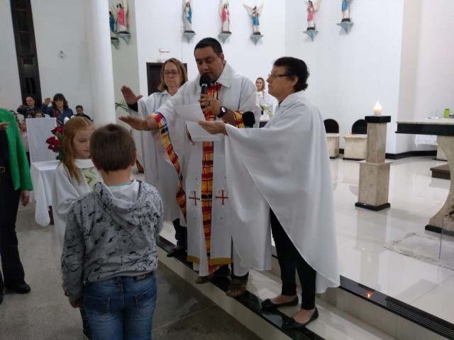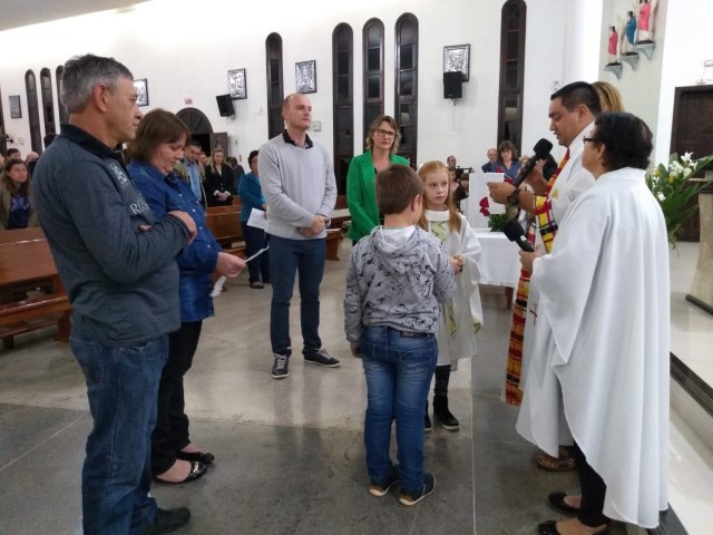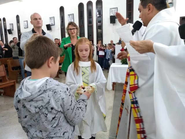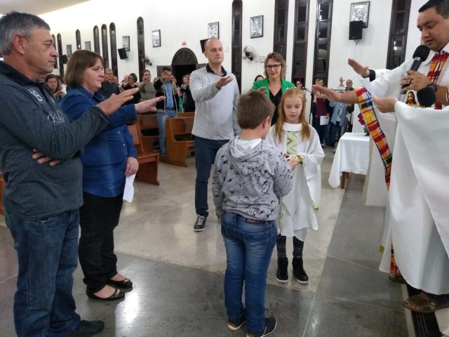 Aconteceu na comunidade da Matriz no dia 11 de maio o envio dos missionários mirim responsável por levar a cestinha das intenções. Agora Guilherme e Mariana integram ao grupo dos missionários Mirim da matriz.