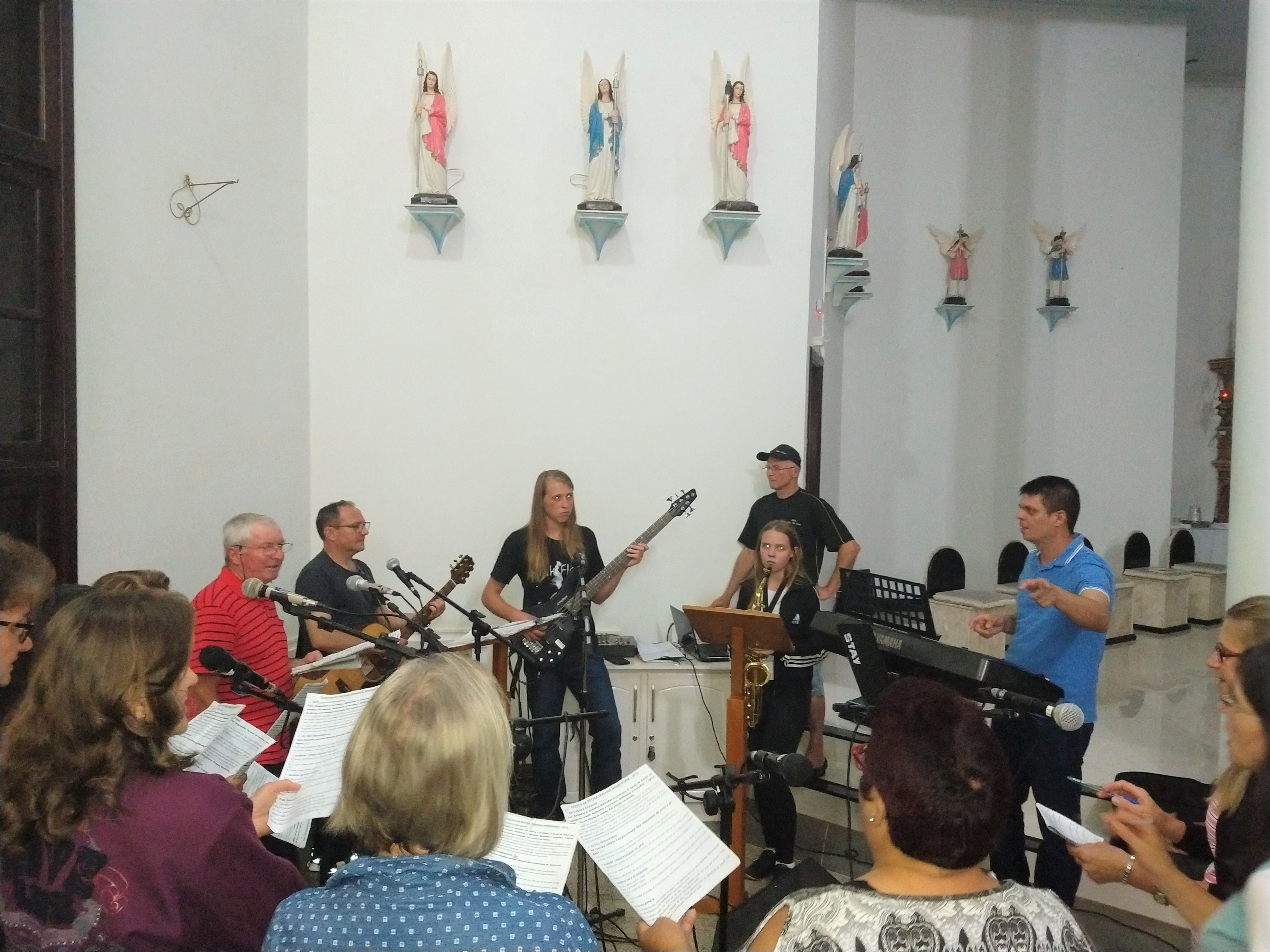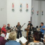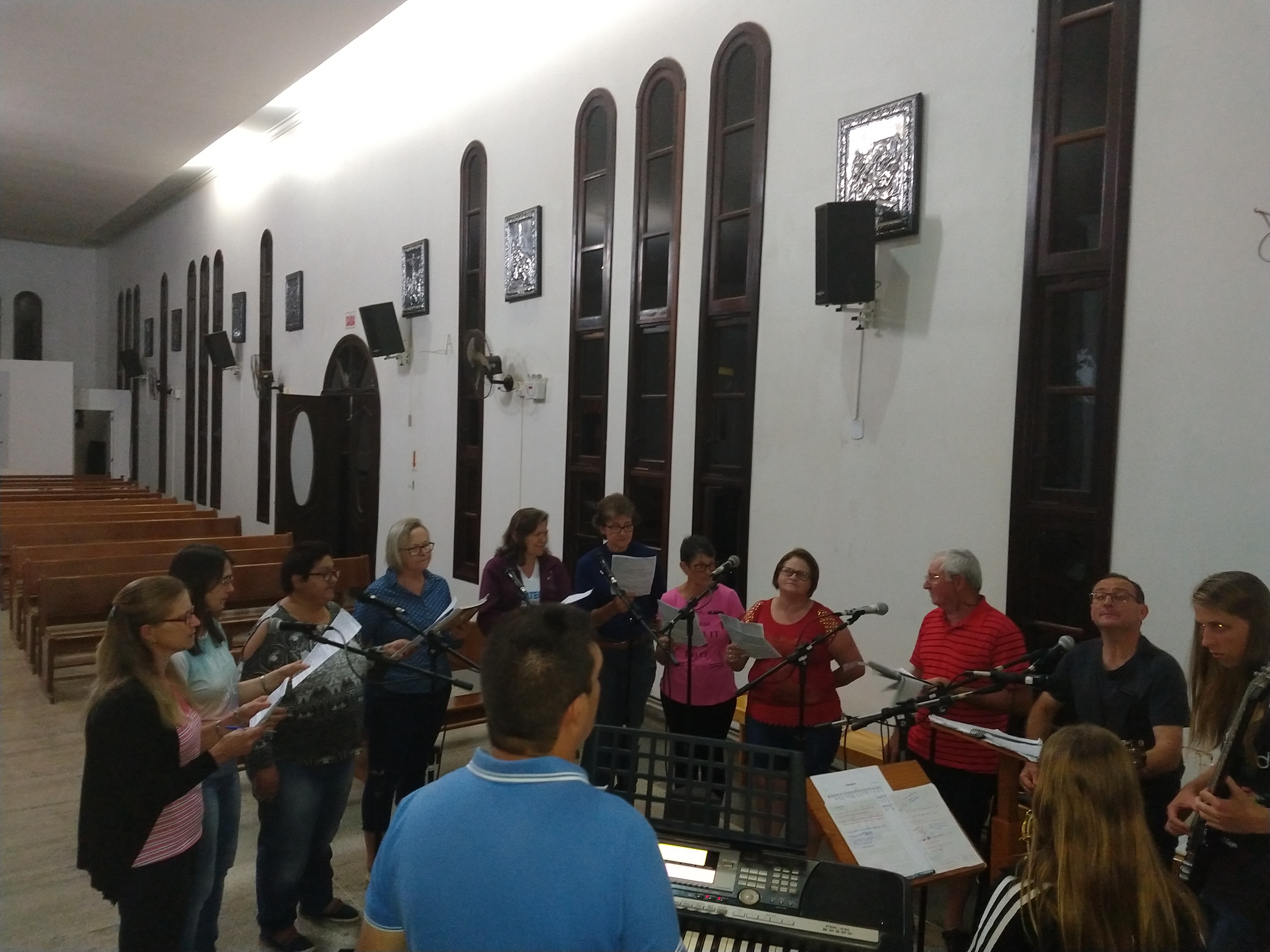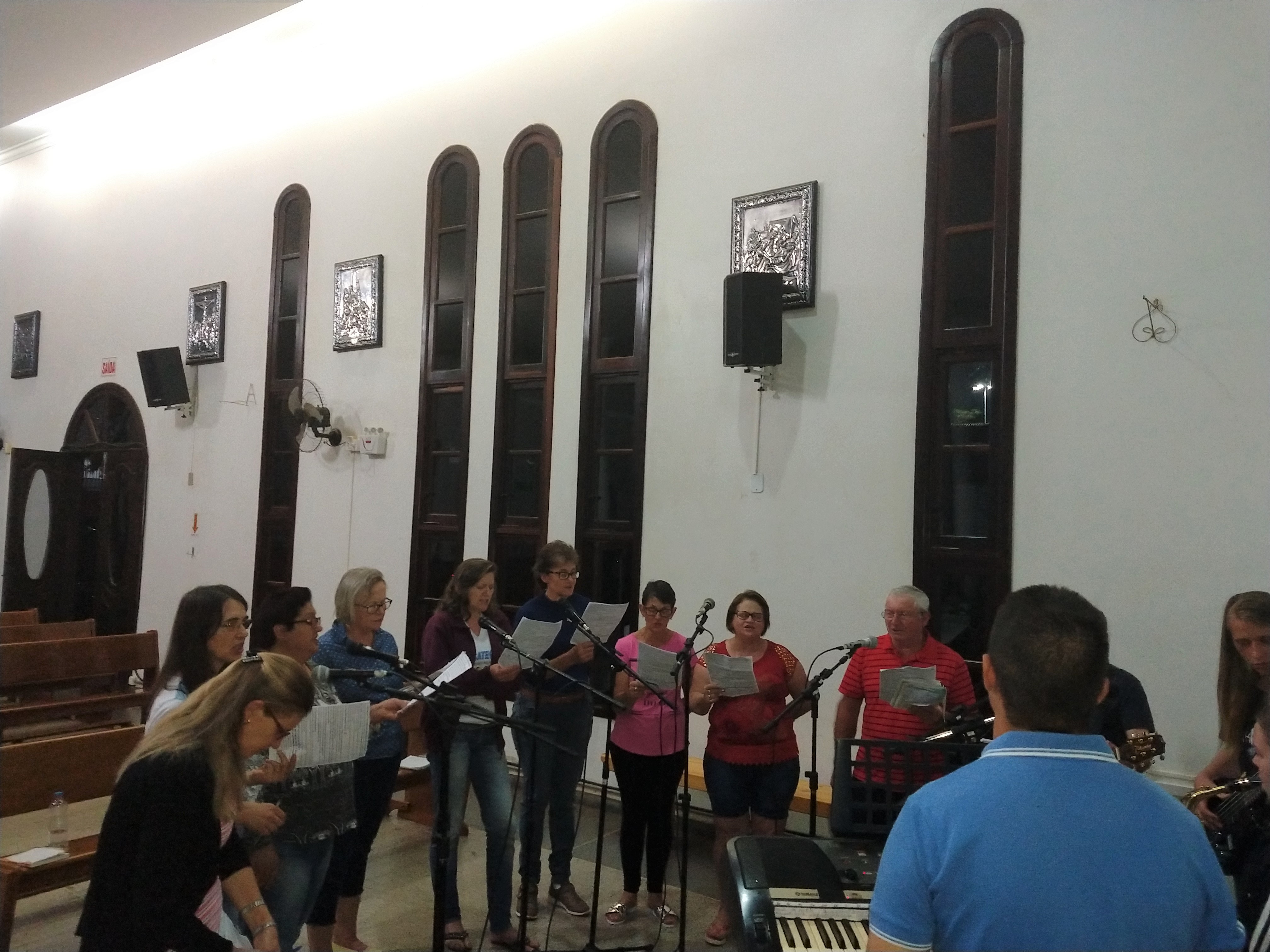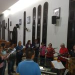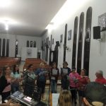 A equipe que vai animar a 7ª Romaria Missionária no Marco das Missões da comunidade de São Lourenço se reuniu para ensaiar os cantos. Todos/as estão bem motivados para essa romaria que tem como tema: “Batizados e Enviados”. Todas as pessoas desde o seu Batismo são Consagrados e Enviados para uma Missão e é por isso que convidamos os romeiros, as crianças, os adolescentes, os jovens, os casais, todas as lideranças de nossa paróquia para participarem da Sétima Romaria. Esse ano não vai ter caminhada; e nas comunidades não TERÁ CELEBRAÇÃO, pois a Romaria é paroquial; a celebração vai ser no Marco da comunidade com início às 9:00 horas manhã; e não terá almoço e após a celebração os romeiros podem retornar para suas casas.