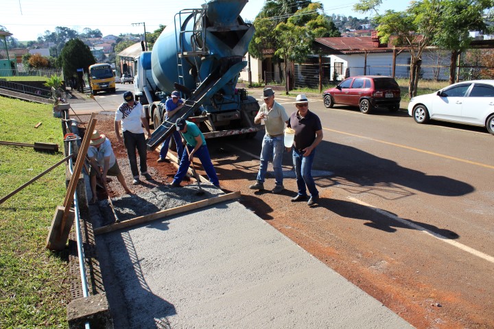 Aconteceu na semana passada a conclusão do passeio ao redor da casa paroquial. Muitas lideranças vieram socar a terra e espalhar o concreto usinado. Desta maneira foi possível a conclusão do passeio para que as pessoas possam melhorar transitar. Novamente a equipe paroquial e a comunidade da matriz agradecem as pessoas que se dispuseram a ajudar na conclusão dessa obra.