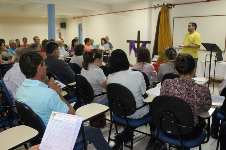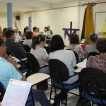 Aconteceu hoje, dia 17 de julho o encontro de formação sobre a pastoral da esperança no auditório da paróquia. Participaram deste encontro as comunidades de Jacutinga, São Jorge, Aparecida, Barra Grande, Pirapó, São Vendelino e a Matriz. O padre Osni passou algumas orientações de como funciona a pastoral da esperança; de como melhor atender as famílias enlutadas; apresentou o folder de oração para rezar com a família quando alguém falece – seria o primeiro momento; os materiais da diocese que são usados para a encomendação, a celebração da esperança e junto à sepultura no cemitério; das três noites de oração na família – apresentou o subsídio da diocese; celebração de sétimo dia com benção da família enlutada e entrega de um folder de condolência. Foi um momento de teoria e prática nesse encontro de formação. Por fim, o padre agradeceu a presença de todos e envio as lideranças para suas comunidades.