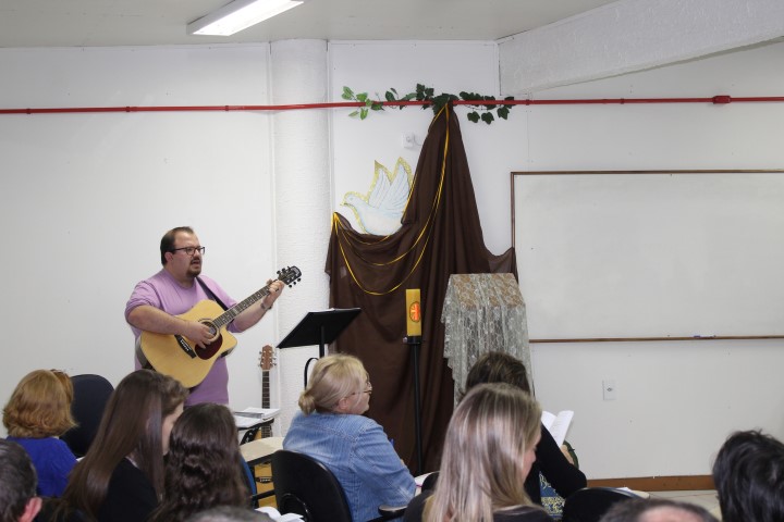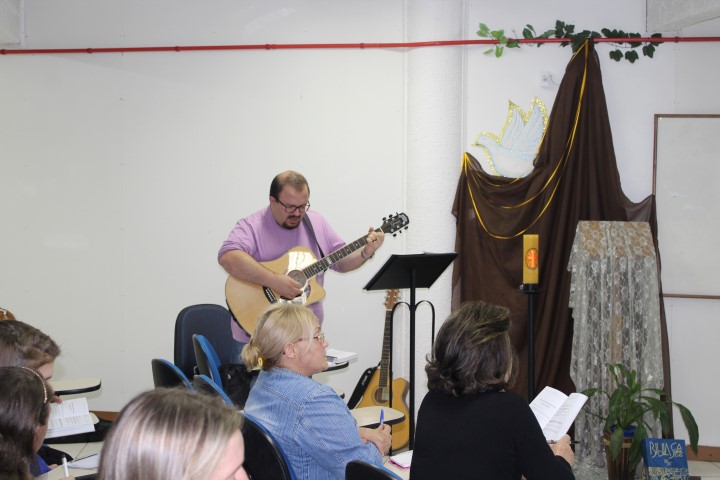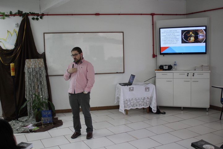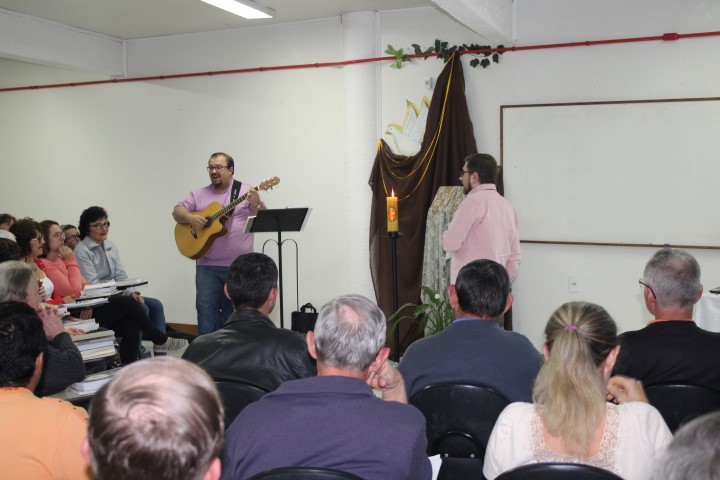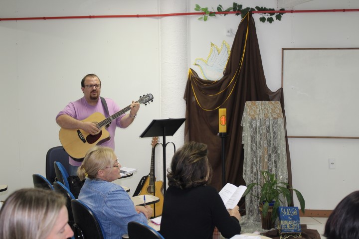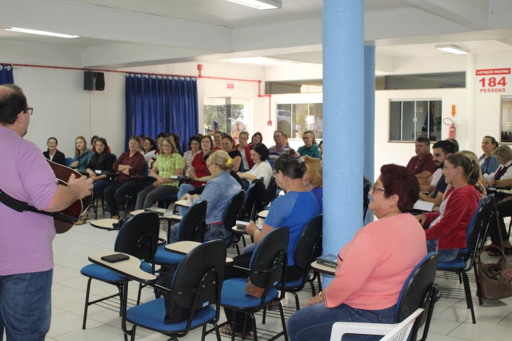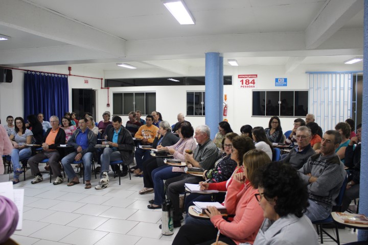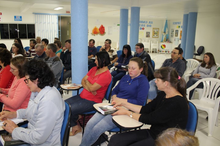Aconteceu dia 05 de outubro no auditório paroquial a formação do Ofício Divino das Comunidades para as catequistas, equipes de liturgia, lideranças do conselho, ministros novos e atuantes. Foi realizado esse encontro à tarde e à noite. Os assessores era o padre Claudir da Paróquia de Xanxerê que falou da parte teórica do oficio e o leigo Flávio da paróquia de Dionísio Cerqueira ensaio salmos, refrãos meditativos, hinos, abertura do oficio.