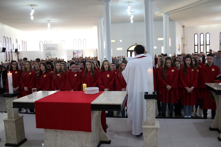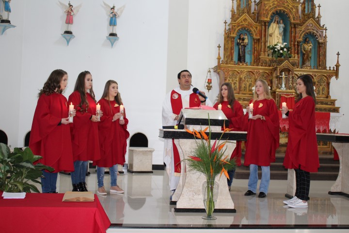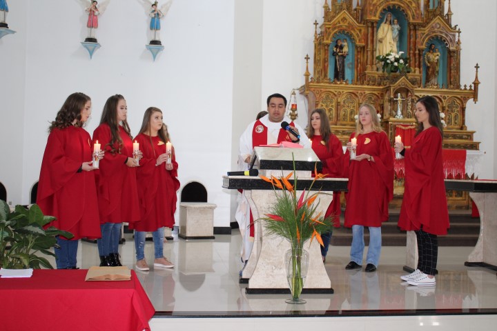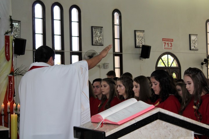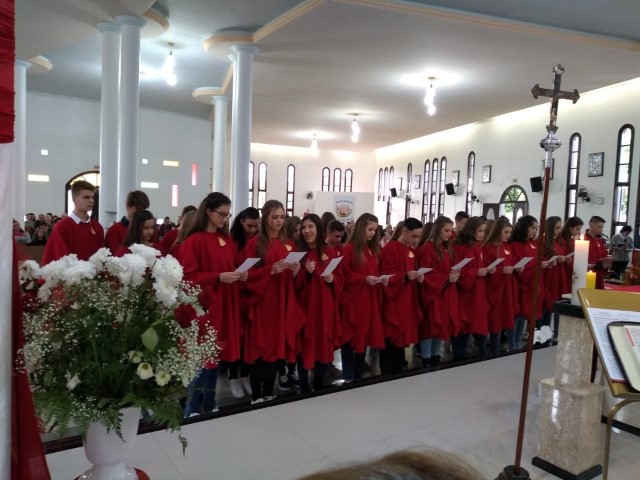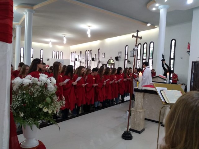 Aconteceu nos dias 08 e 09 de junho na comunidade da matriz a celebração da Confirmação da Crisma de 85 jovens que realizaram o Catecumenato Crismal. Houve a participação de pais, acompanhantes, familiares e a comunidade.