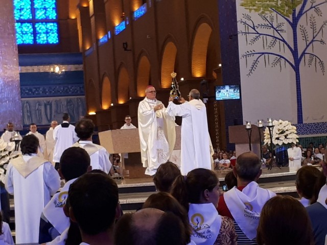 As lideranças da paróquia de Iporã foram até aparecida do norte no dia 27 de abril, no dia 28 visitaram o local e às dez horas as lideranças participaram da celebração de entrega da réplica de Nossa Senhora Aparecida para a diocese de Chapecó. Dom Odelir recebeu a imagem do administrador de Aparecida. Foi um momento de muita oração e peregrinação. O grupo visitou o Santuário de Nossa Senhora Aparecida e a Igreja do Frei Galvão em Guaratinguetá.
