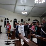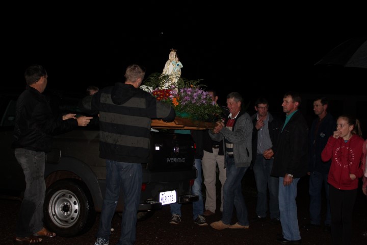 Nesta noite, dia 02 de agosto, mês vocacional. Foi com essas motivações que a comunidade de Macucozinho recebeu da comunidade de Quilombo a imagem de Nossa Senhora das Mercês. Ela veio cheia de esperança trazendo uma chuva calma que molha a terra e as plantas.