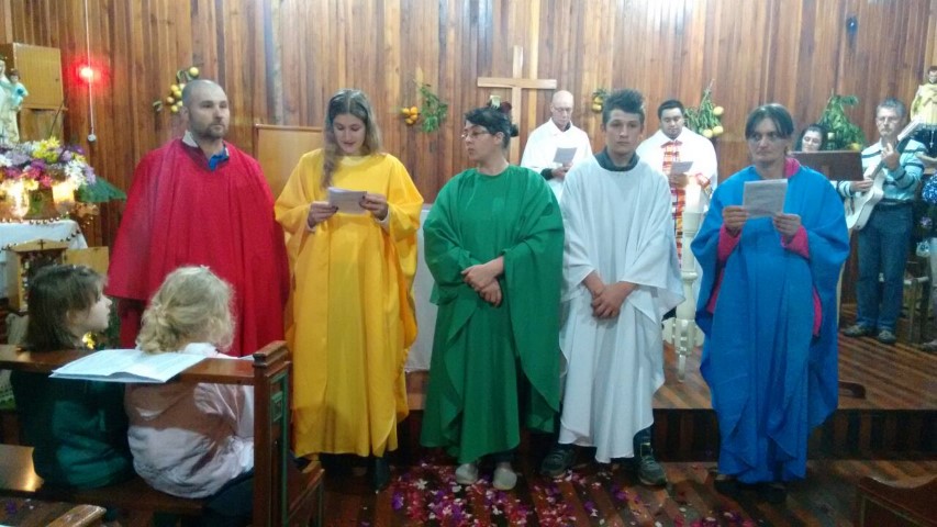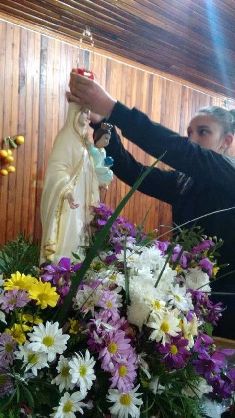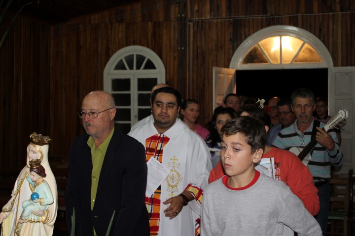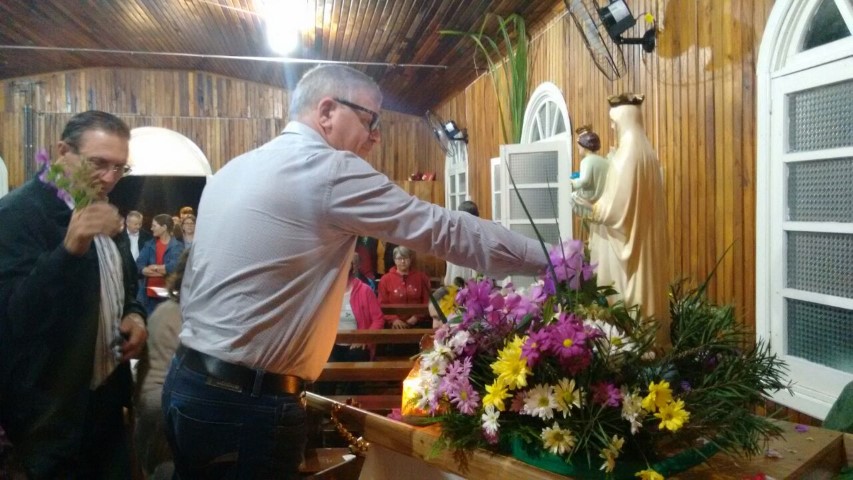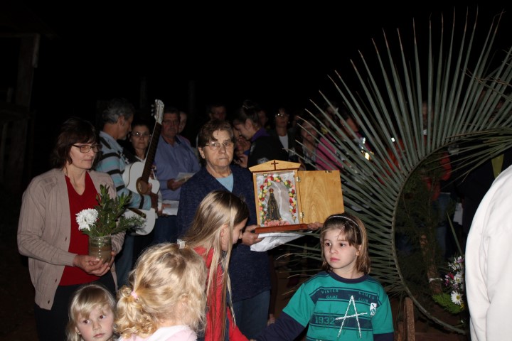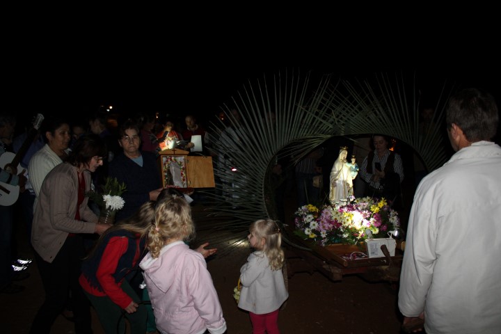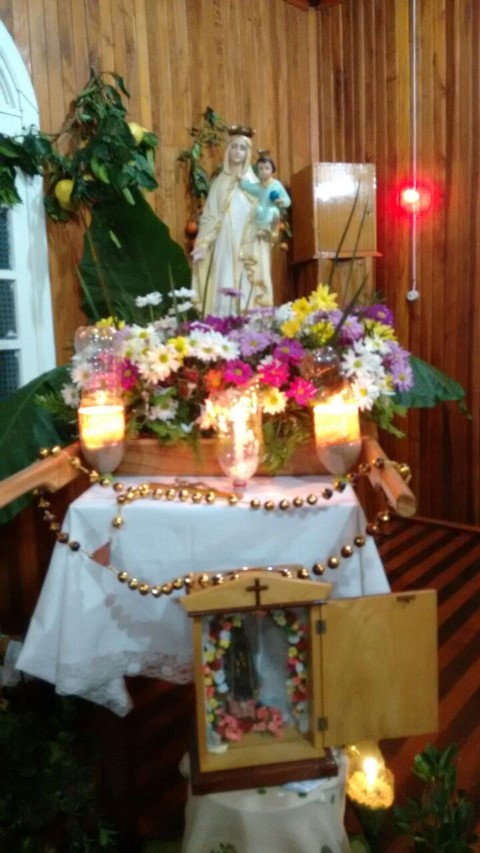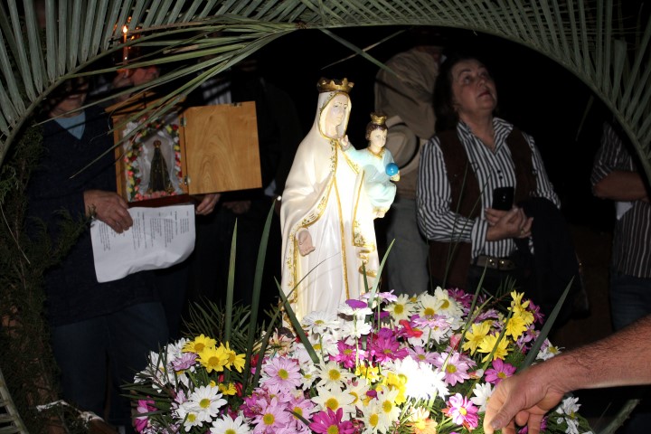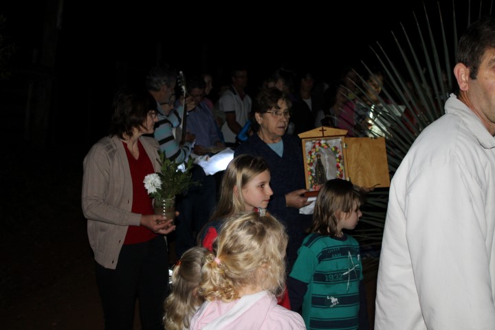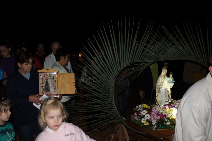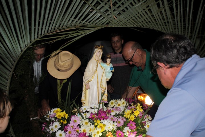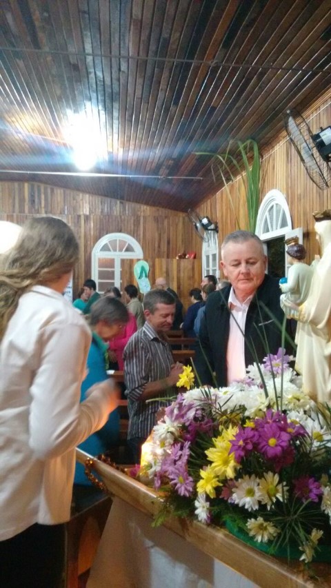 Hoje, dia 13 de julho iniciou a visitação de Nossa Senhora das Mercês na comunidade de São Luiz. Algumas famílias e lideranças da Matriz levaram a santa até a comunidade. O povo acolheu NSM com foguetes e cantos, e em seguida a santa foi levada numa “carrocinha” enfeitada. A caminhada até a igreja foi seguida de louvações, paradas com reflexões e cantorias. A comunidade se preparou muito bem para acolher a padroeira de nossa paróquia. Participaram da celebração comunidades vizinhas; pessoas de outra religião; a equipe de canto era de Caibi e o povo de São Luiz.