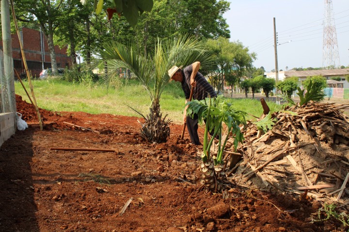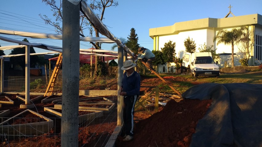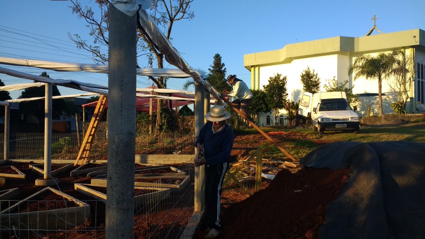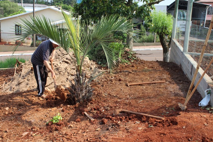 Apoiadores e a lideranças da Pastoral de Conjunto se reunião em mutirão em prol do Horto Medicinal. Foi plantado pé de banana e de butiá; carregamos terra e espalhado ao redor do horto; aplainado dentro do horto e posto adubo nos canteiros. Era um batalhão de gente que se dispôs a trabalhar nessa manhã.