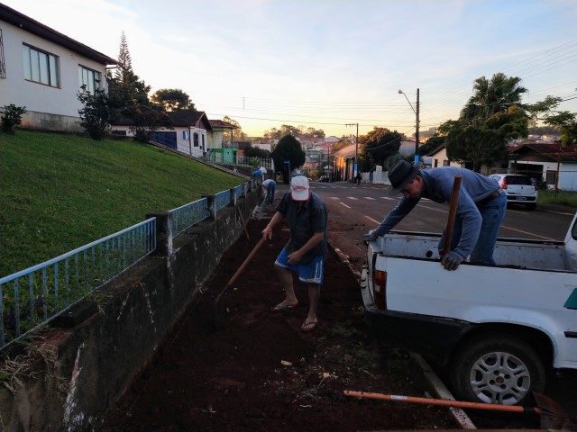 Iniciamos há vários dias ao lado da casa paroquial o serviço de retirada das árvores e o melhoramento da calçada, pois esta estava intransitável para as pessoas. Com o apoio do Conselho de Evangelização da matriz e a força de trabalho de muitos voluntários está sendo realizado essa “OBRA MISSIONÁRIA”, de muitas mãos, e de pessoas que ama a comunidade e querem o melhor. A equipe paroquial agradece as lideranças do conselho, os voluntários, e órgão público pelo trabalho prestado.