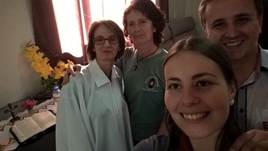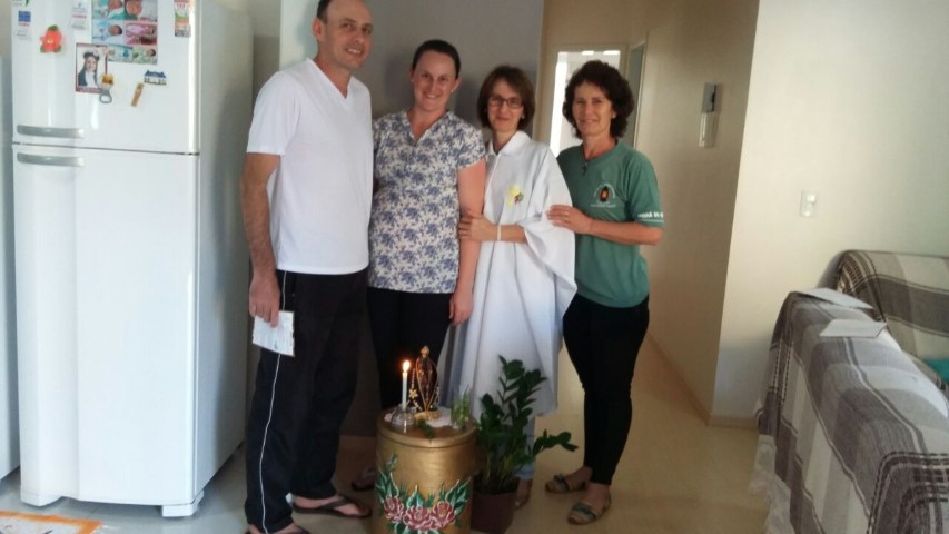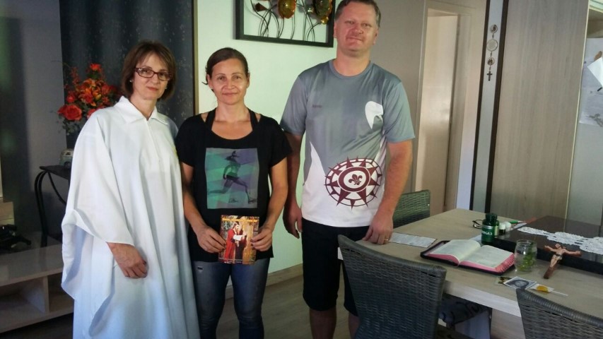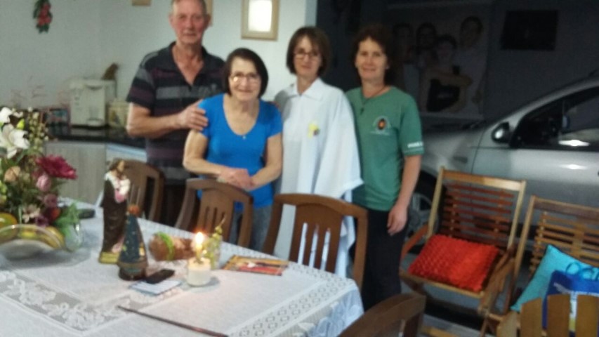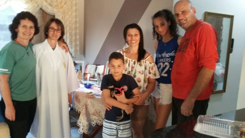 As missionárias da comunidade da matriz continuam abençoando as casas das famílias. Há ainda no centro da cidade muitas casas e famílias a serem visitadas. Aos poucos os missionários vão visitando as famílias e levando a benção. As missionárias estão sendo bem recebidas pelas pessoas.