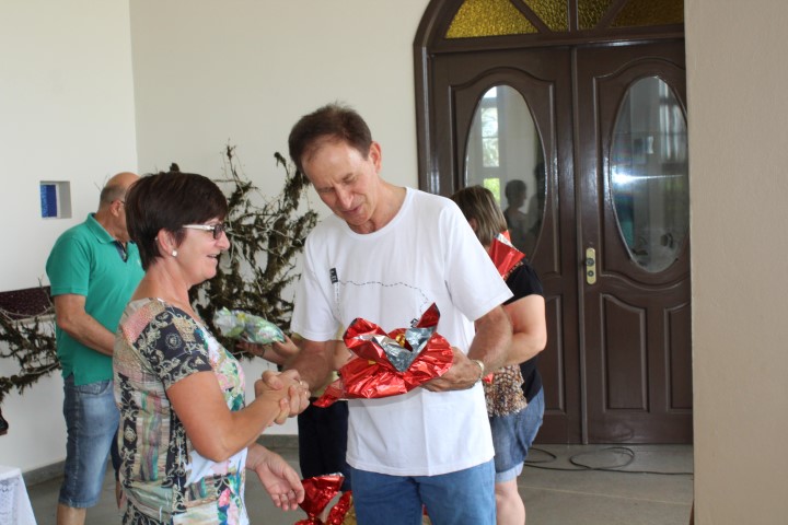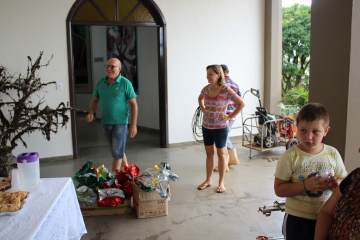 Aconteceu dia 20 de dezembro o mutirão de limpeza na igreja matriz. Todos os grupos que limpam a igreja durante o ano estiveram fazendo a limpeza na igreja para bem se preparar para a chegada das pessoas e o aniversariante, “o menino Jesus”. Houve uma partilha de alimentos e foi dada uma lembrança para cada senhora.