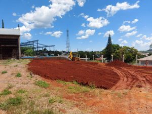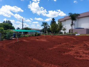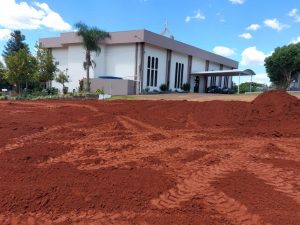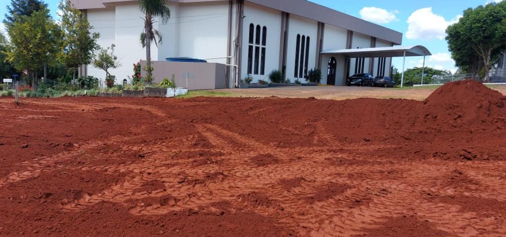 O espaço agora amplo, que servirá de estacionamento e realização de atividades diversas, recebeu a colocação de terra. Feito o preenchimento com terra, as próximas etapas concentram-se no paisagismo com o plantio de grama e arborização neste local. Esta é mais uma grande conquista para oferecer esse espaço à comunidade. As obras foram pensadas e executadas com o objetivo de aproveitar ao máximo esse lugar especial e abençoado.
