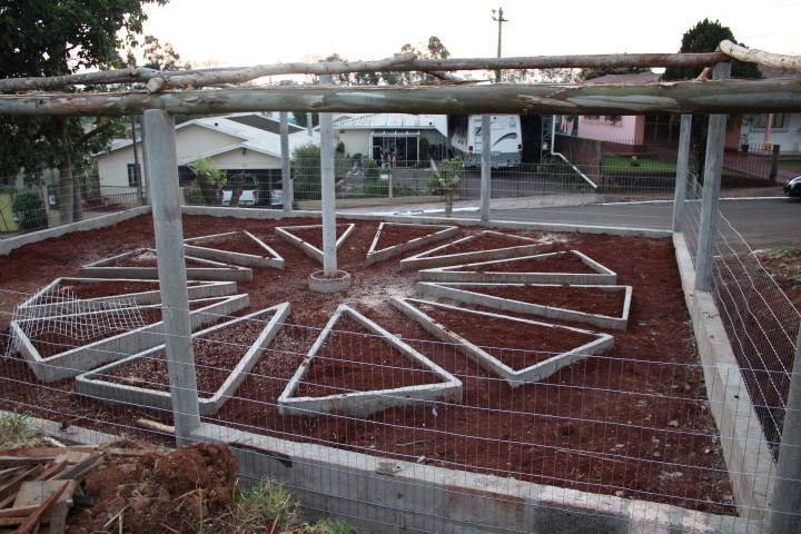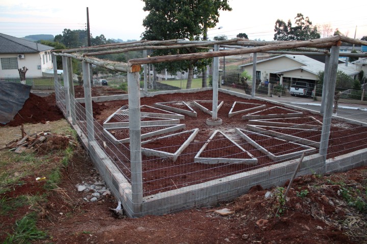 O trabalho de construção do horto medicinal está ganhando forma e aos poucos vai se concluindo. Foi cercado o espaço, posto as varas eucalipto nos palanques e os voluntários estão espalhado terra por dentro do horto. Quase na reta final…