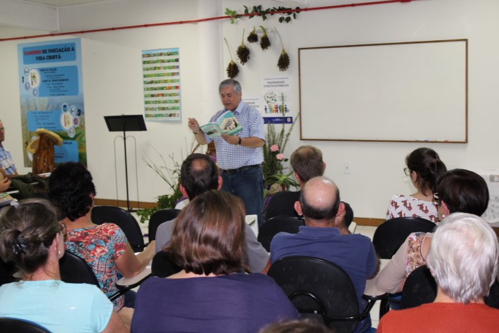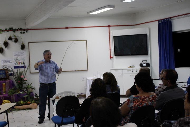 Aconteceu dia 10 de abril no auditório paroquial a palestra sobre as ervas medicinais com o tema: “Redescobrindo o poder das ervas medicinais”. O palestrante era o Pe. Paulo Wendling de Novo Hamburgo-RS, pois a 30 anos atende pessoas com chás, ervas e plantas terapêuticas. O encontro era para todas as lideranças e pessoas que tinham o desejo de conhecer um pouco mais sobre as ervas medicinais.