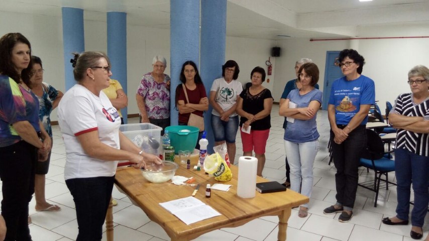 No dia 17 de abril a Pastoral da Saúde da paróquia de Iporã do Oeste programou um encontro de experiência e conhecimento de plantas medicinais. Elani da Pastoral da Saúde da Paróquia de Caibi ensinou o preparo de dois tipos de cremes. Um desodorante e um creme hidratante. Houve boa participação e algumas pessoas voluntárias se prontificaram para contribuir nos trabalhos da Pastoral. Ao final do curso, tivemos partilha de lanches com diversos tipos de chás. Agradecemos à todos os envolvidos, juntos faremos a diferença. Quem quiser adquirir o creme hidratante, ele está disponível na secretaria da Paróquia no valor de R$ 10,00 (escrito por Cleusa Ludwig).