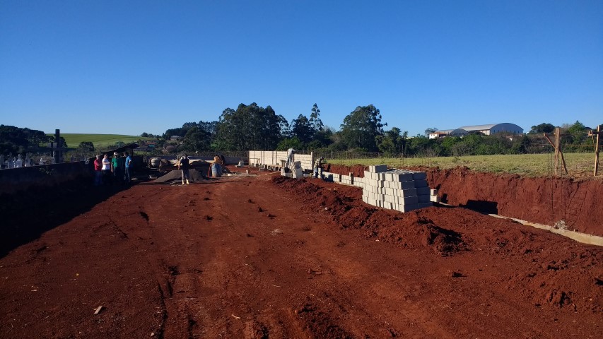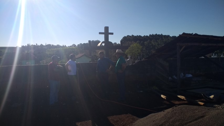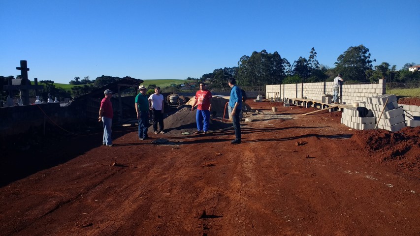 O Conselho da comunidade da matriz contratou os pedreiros para fazer o muro ao redor do cemitério. O objetivo é cercar a parte que foi doada e restaurar o que está construído. Melhorar a portal de entrada.