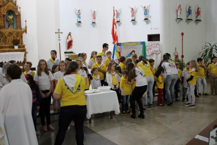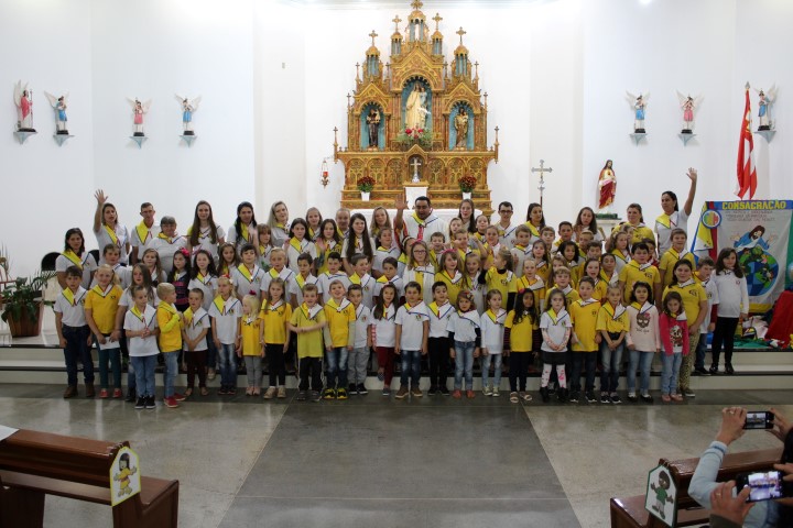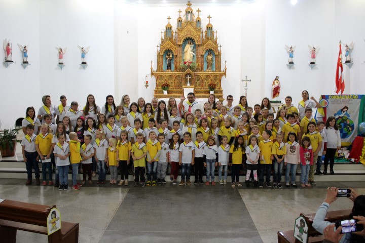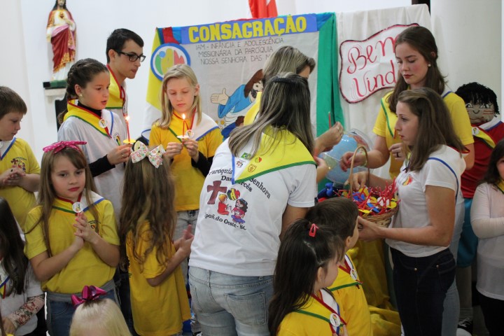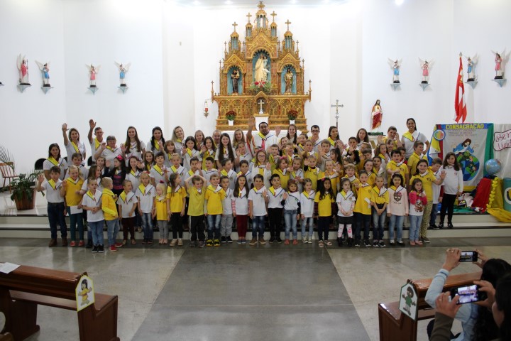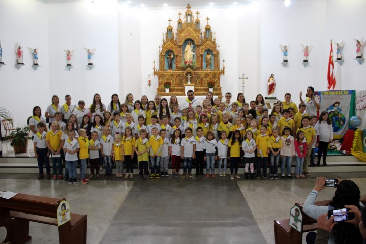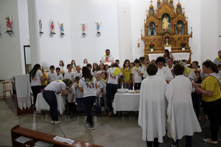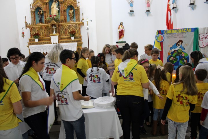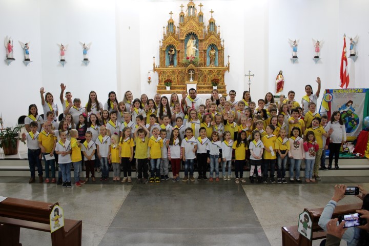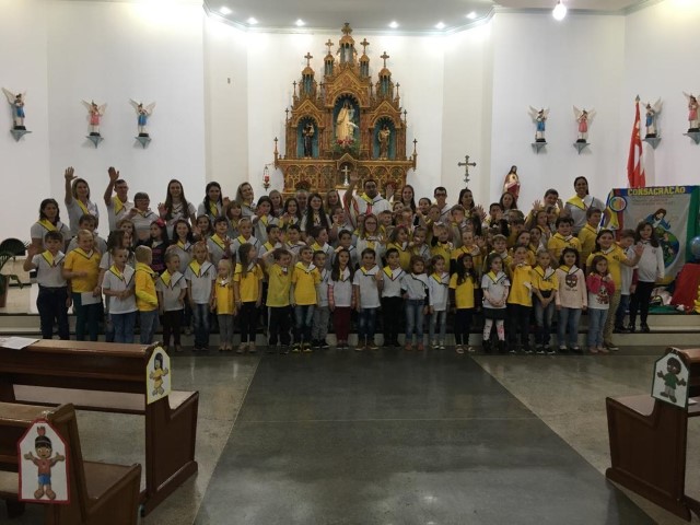 Aconteceu no dia 18 de maio na comunidade da matriz a Consagração das crianças da Infância Missionária da paróquia. A infância missionária iniciou a caminhada formativa na metade de 2014 e desde aquela época as crianças não tinha recebido uma celebração de consagração. Temos a infância missionária em oito comunidade da paróquia. Participou dessa celebração de consagração os pais, parentes das crianças e a comunidade da matriz.